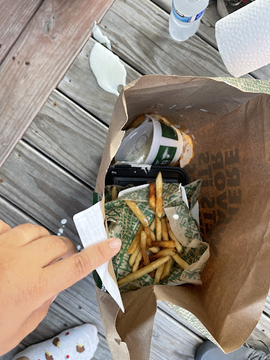 Dine in at 9:00ish on 27 March and about 5 employees with 1 working counter. 1st impression...a little meh. There was annoying music playing through what I guess was someone's phone or Bluetooth speaker. I assume an employee because at some point there were no customers up front and the music still came from that direction. Had about 3 folks waiting and 2 had asked if there order was ready. The counter half-hazzardly checked a bag and replied no. We ordered, but the counter person couldn't figure out how to substitute corn for fries. Walking to our seats I saw the dining room's paper towel roll with a wet ring along the bottom edge, and I thought it would get changed out. It didn't. There were a few tables and spots in the floor that were sticky. I attempted to pour a drink from the fountain and the DP and Coke were out. At that I just sat down. Food came out, mine was good, my wife's tenders after her 1st one were cold đ„¶. I went to the bathroom and the male door has some type of substance and the hydraulic arm is disconnected so a disabled person would not be able to get in. The bathroom smelt of urine. BUT it did have soap and paper towels. So while I gave 2 stars for the food and atmosphere, I could see the front cashier was trying and remained cheerful and friendly, so 5 stars! Oh, and those two guys who had asked earlier about their food... yeah, the food had been on the shelf the whole time. It's a great location, but like the review of the Burger King in the same shopping area I did a while back, unless the owner/management gets a handle on this place quick and often.. it will...