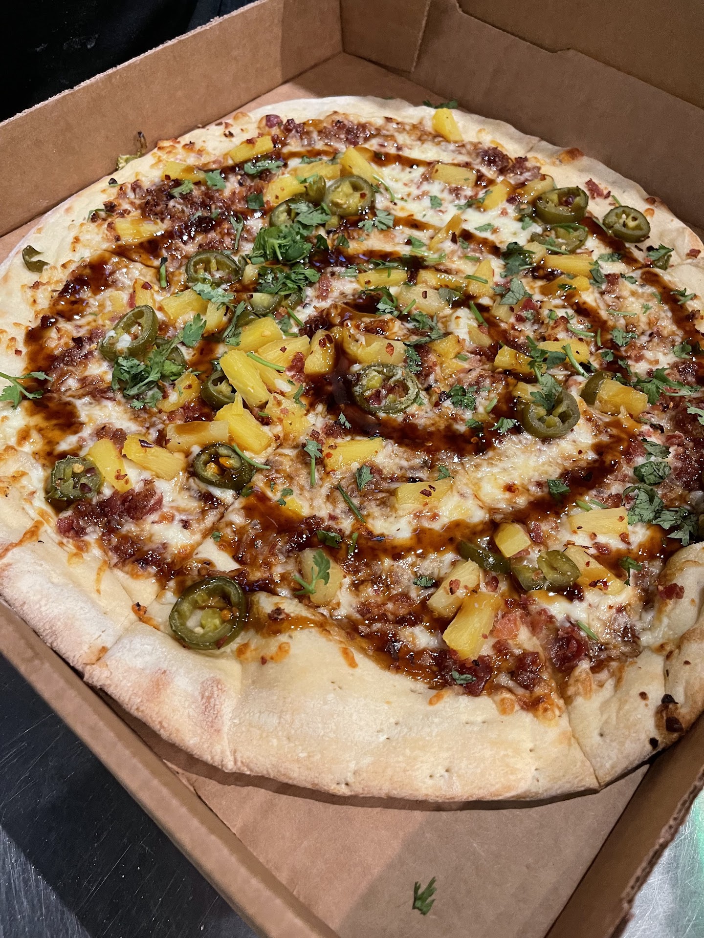 Now the most important part = the pizza. Great variety of fun non-traditional options. I got the Pineapple one and it was unique, way hotter than I anticipated, but it was easy to take some peppers off