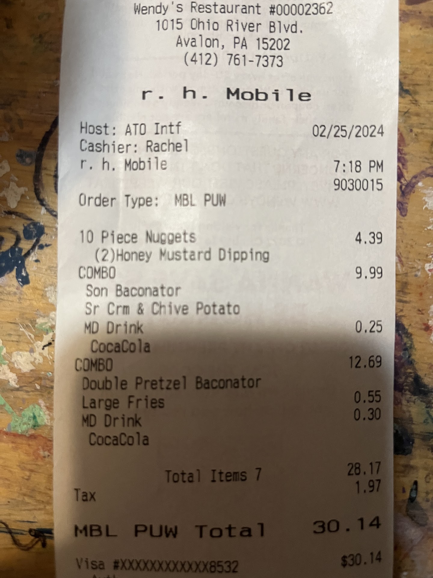 Read moreThis place is trash. I couldn't do a review for today 7/10/23 at 4:01 pm because Maps had me at Subway instead (which is right next door). I was waited on by Sterling and a young lady at the drive thru.....So I bought a biggie bag and ordered everything including a drink as you can see from the receipt. I got home and realized "no drink" it's too hot to eat without an ice cold drink so I went back and politely asked for a bigger size drink because now I'm really parched because I went to both doors which were locked. According to the young lady because of "short staff" (I guess they can't teach the locks) So I got back in my car and drove through the drive thru AGAIN and the young lady told me her "shift supervisor" yelled at her for trying to get me a bigger drink. I haven't been here in 4 months because service is extremely poor and food is lukewarm at best Needless to say this Wendy's should be a non factor and closed. They can put something else there than another McDonald's, Long Johns. Id Love to see a Taco Bell replace this travesty of a restaurant.