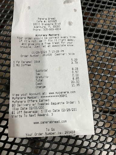 Panera delivery is a bunch of BS. Two days in a row, yes I gave them a second chance, we ordered Panera Aventura to be delivered. After waiting more than 2 hours, we called to speak with the manager that simply said that they don't know what happened to the order. Then we received a notification that it was delivered but to a completely wrong apartment that is clearly marked. We called to dispute the charge and Panera simply said that food was made and delivered. The next day, we ordered. Same thing, almost 2 hours go by and of course we are steaming by then. The manager again said he wasn't sure where the order was. Sometime after calling multiple times, we finally got a notification that the order was delivered...to the wrong apartment, completely different from our apartment and different from yesterday's mess up. It is as if they do not care where they throw the food and take a picture and leave and Panera has the nerve to criminally charge for it for an order that was never received. The management team at Aventura has no care in the world about the quality of service and do not care to rectify their clearly bad delivery service who is billed through Uber but Uber told us that it is the Panera delivery team. It is so sad that any other Panera we have been to, we haven't had issues. I am surprised that these people working here are still employed because there are plenty of people out of work that have the care to try and live up to what we thought was a decent standard...
