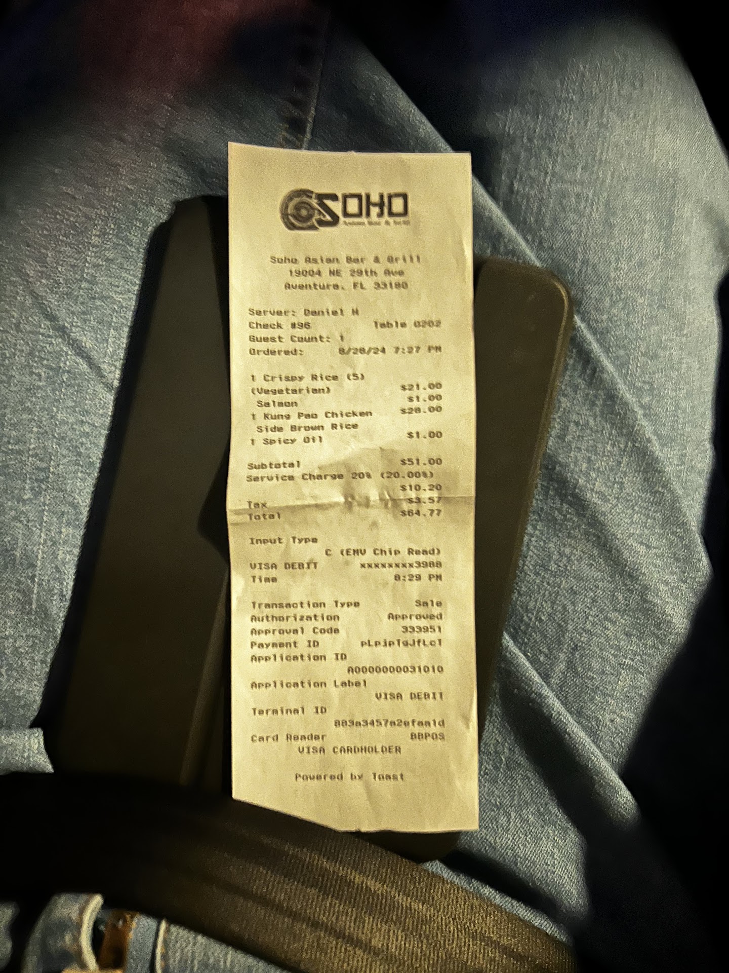 Until the end, when it came time to pay, I noticed a 20% which total $60 service charge on the bill. I have no issue with service charges in general, but what bothered me was how the server explained it. He mentioned that most, if not all, of the service charge doesn’t go to the staffs, and only a small portion is given to them. He also shared that this has caused many staff members to quit. This comment made me feel guilty for not tipping more on top of the $60 service charge.