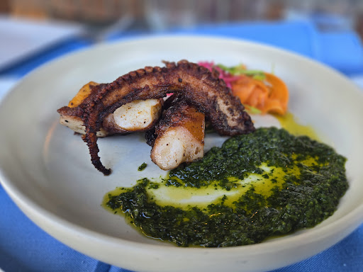 Read moreAfter an amazing day at the beach in Belmar, I was looking for a place to eat before making the trek northward on the Parkway, and after checking out the menu, I was very excited to check out Cavé Bistro. Before driving over (less than 5 minutes from the beach) I called to see what the wait time was, especially being Labor Day weekend. The hostess told me they were booked until 7:30pm (I called around 5:30pm) so my party agreed the wait was too long for us, so we started looking elsewhere. To our surprise, the hostess called us back in about 2 minutes saying she could have a table immediately ready for us if we were willing to sit outside. The temperature was very pleasant, so we actually loved the idea of eating outside, so we agreed to the outdoor table, and drove right over. Upon being seated, we were informed by our server all ingredients are "farm to table" and gluten free. After a quick perusing the menu, we decided on grilled octopus and two orders of crab cakes for appetizers and we all decided on different specials for our mains. I opted for the seafood special, which was a seared tuna, and my friend and her mother chose the steak special, which was a similar cut to a hanger steak. We all agreed, the highlight of all ordered food was the grilled octopus. The meat was so soft, and had just the perfect about of char on it. We actually wished we got two orders of the octopus versus the crab cakes. Crab cakes were bad, they were quite meaty, but when compared to that octopus, the winning dish was clear. My seared tuna was cooked and seasoned well...again having that nice char with being nice and raw in the center. The steaks were also well cooked at medium (my friend's mom did want her's cooked slightly more after receiving it) and they felt the meat was under seasoned (as in essentially plain). The steak was topped with a very potent garlic infused butter/spread which they personally were not a fan of. I actually ended up eating my friend's dish, I thought it was good, though I could understand her feeling of the steak lacking flavor. It was well cooked though. Overall I felt the food was good, I would come back to sample more of the menu. The staff was very friendly and accommodating to our party. Food was a bit on the pricey side, but you expect that for a farm to...