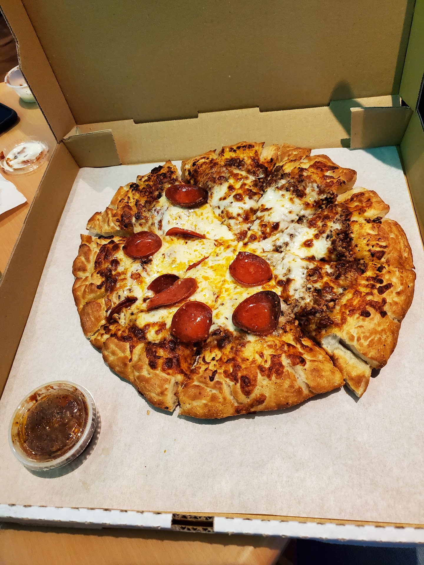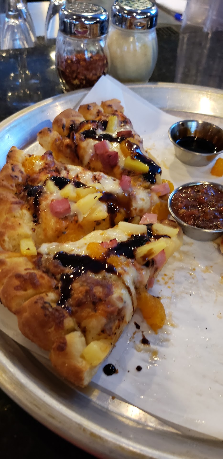 Read moreWe ordered 2 small pizzas with 2 toppings and cheesy bread. When comparing prices to Doughboys and Antonios they charge a little more. With regards to the sauce, whether someone likes a sauce is a personal preference. My husband prefers more tangy sauce and said it was way too sweet, I also thought it was on the sweet side and our son who likes sweet sauce thought it was ok. My issue with the sauce is that it's over spiced to the point that I couldn't even taste the tomato . The rest of the ingredients on the pizza were perfectly fine. The cheesy bread was very delicious. We will try this place again but not the pizza unless they were to...