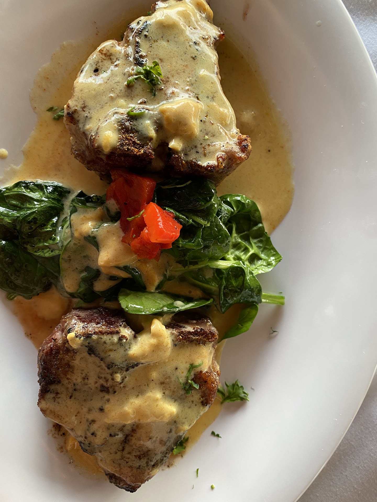 The standout of the evening was undoubtedly the Branzino fish stuffed with crab, shrimp, and scallops in a lemon caper sauce with spinach. This dish is a true masterpiece, showcasing the chef's skill in combining Mediterranean flavors with precision. The Branzino, cooked to perfection, was generously stuffed with a harmonious blend of crab, shrimp, and scallops, creating an explosion of taste with every bite. The lemon caper sauce added a zesty brightness that perfectly complemented the richness of the seafood, while the bed of spinach provided a fresh, earthy contrast. The presentation was equally impressive, making it not only a culinary delight but also a work of art on the plate.