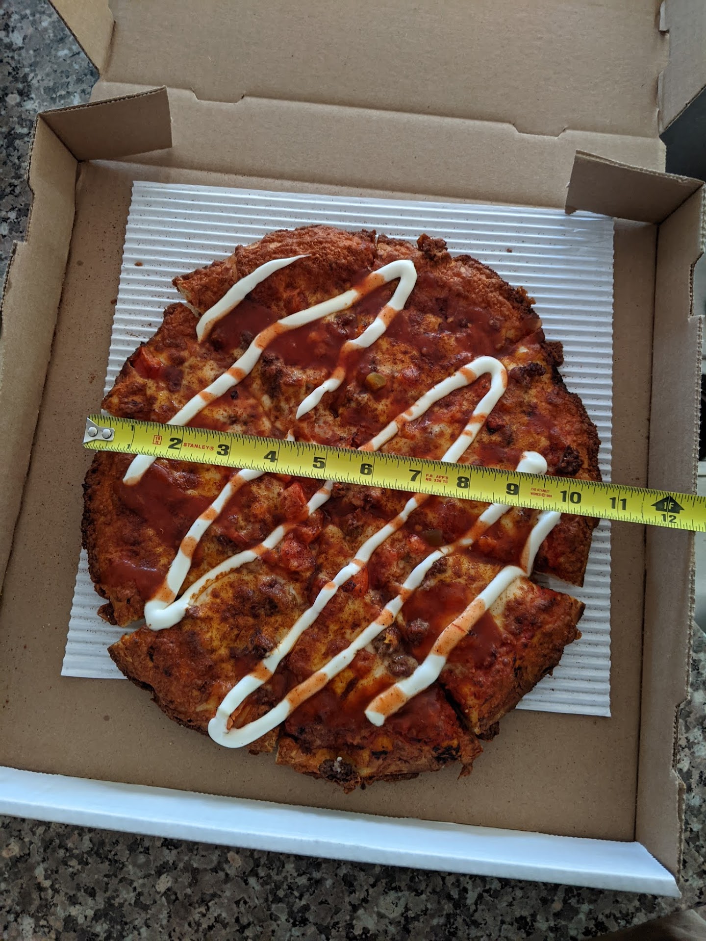 We got a small bacon cheeseburger pizza - this was actually pretty good. Four stars good, which I consider a very strong rating.
