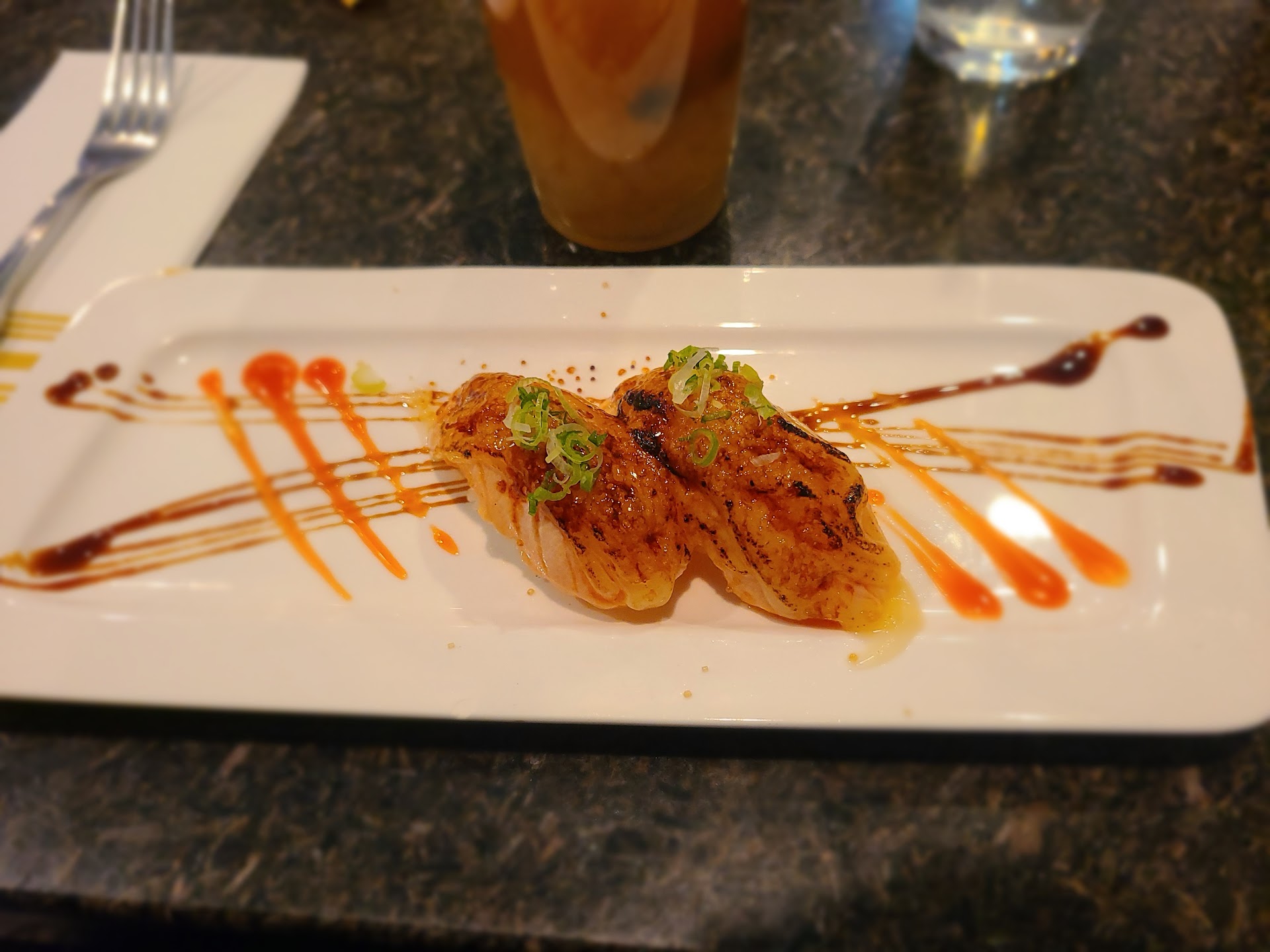 The sushi appetizer "Honey Glazed Apple on top of Salmon" looked and tasted like something you might find at a 4 or 5 star restaurant. The flavor, the texture, the presentation... It was unprecedented. When I am next in the area, this will be something I will always order in addition to the rest of my meal. Make sure you eat it as served, because dipping it into soy sauce would be an injustice to the delicate flavors of Salmon, honey glaze, green onion, and char from the lightly blowtorched surface!