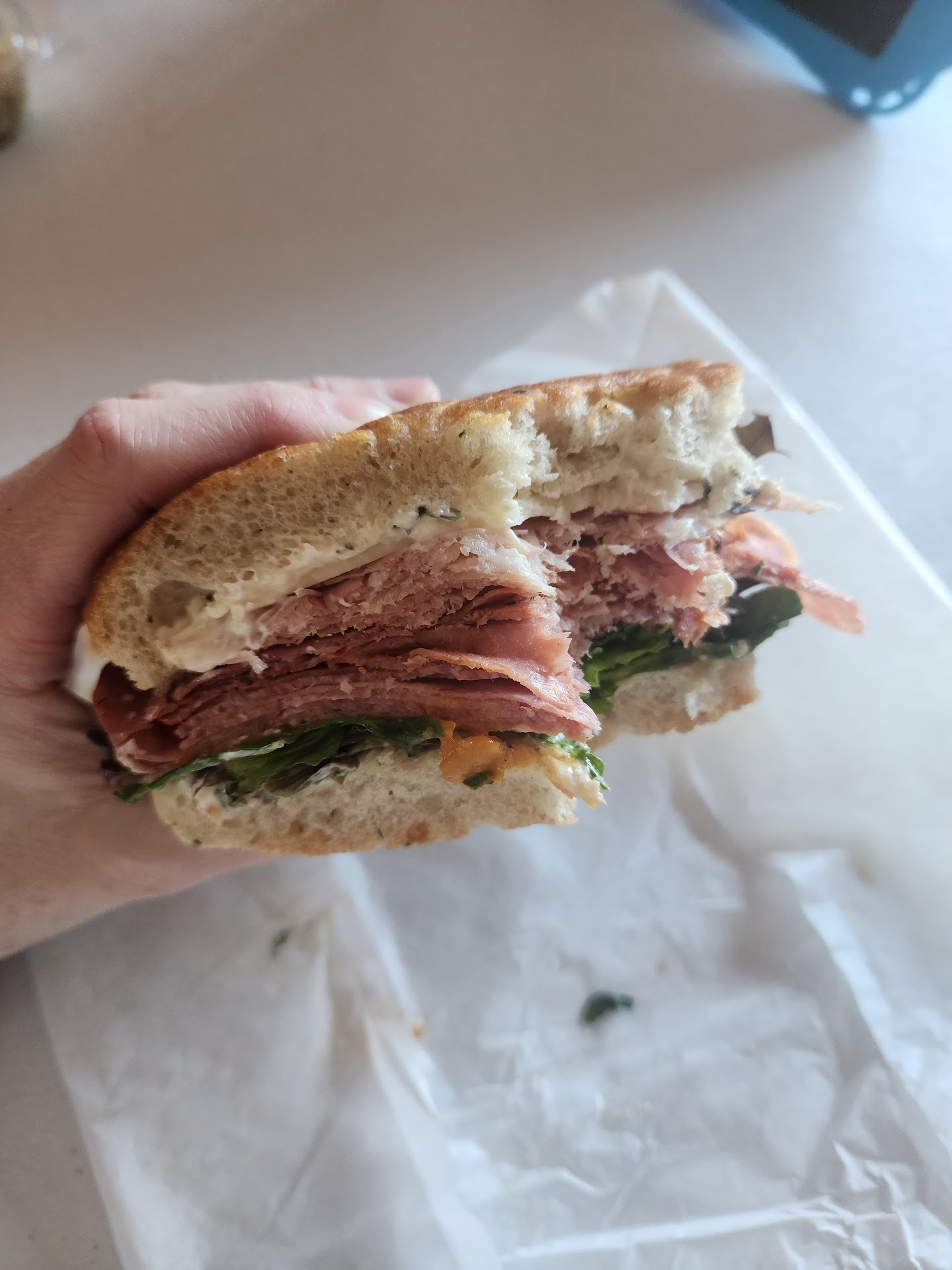 I got "the rajai" sandwich and it had all very fresh ingredients and was bursting with perfectly balanced flavors. The roast beef especially was so good and fresh and perfectly prepared. For my sides I tried chips and dip, and the pasta salad. Both were amazing. They aren't joking when they claim the chip dip is life altering, it really is that good! Pasta salad too was just so good and fresh and perfectly seasoned. The chocolate chip cookies were soft and perfectly cooked.