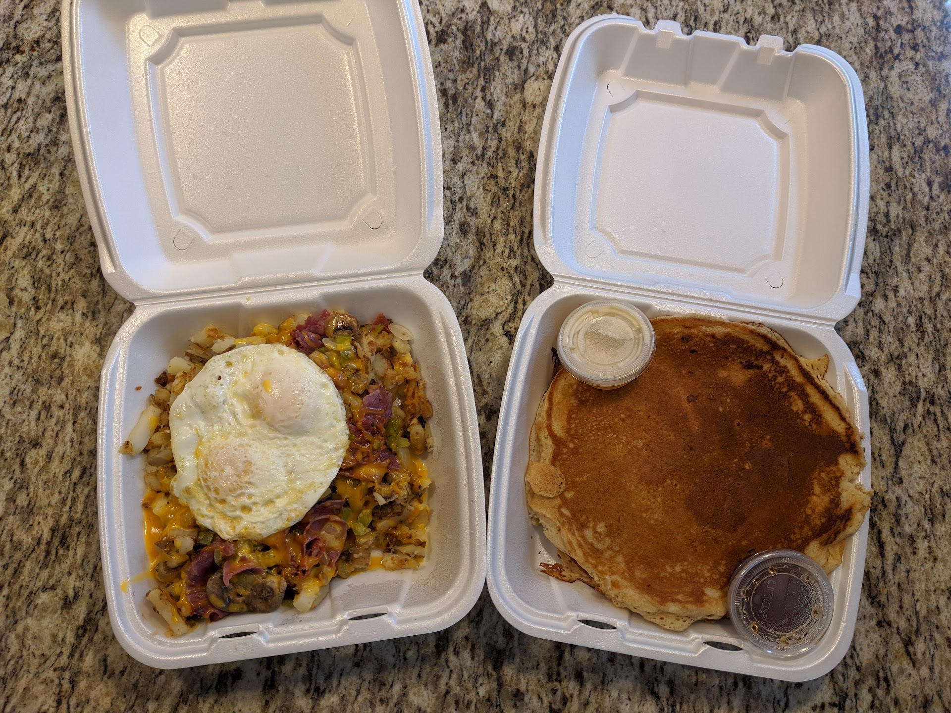 The restaurant claims "vegan" menu items. The staff and ownership do not understand what vegan actually is. There is one vegan menu item which is frozen pancakes. The frozen pancakes were not in stock... It is unacceptable for a breakfast restaurant to use anything other than fresh ingredients and made to order dishes. It takes longer to thaw frozen pancakes then it does to pour batter on the griddle.
