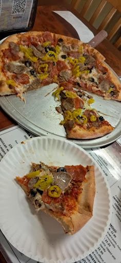 Read moreI'm probably gonna get hate from the regulars, but here goes. First time visit, we drove up from Sebring about 16 miles to visit this establishment because of so many positive comments on the Sebring group on Facebook. So here is our honest impression. 1st) It's very warm inside, you seat yourself, menu was on the table in our case. You go to the counter order and prepay for your food, where there's a spot to tip before you've even tasted the food. You have to get your own drink, which in hindsight is good because otherwise you'd be left searching for utensils. You need to search out and locate any toppings such as crushed red pepper, cheese, etc. They do bring you food to you, that's the end of service. 2nd. There were just two of us we ordered a medium pizza 14" with 5 toppings(their specialty), the manicotti, a beer, and a soda. Now, the pizza had pepperoni, sausage , meatball, banana peppers, and black olives. It should have been quite flavorful. It presented nicely but lacked any flavor. It was meh, but it was hot. The crust was the perfect thickness, foldable without tearing. There were two manicotti with sauce and a very nice garlic bread. This meal totaled 49.00 plus change. After our dining experience, I felt no guilt leaving no tip. Pizza looked exceptional, but looks can deceive. Try for yourself. There's no such thing as bad pizza, but MEH pizza,...