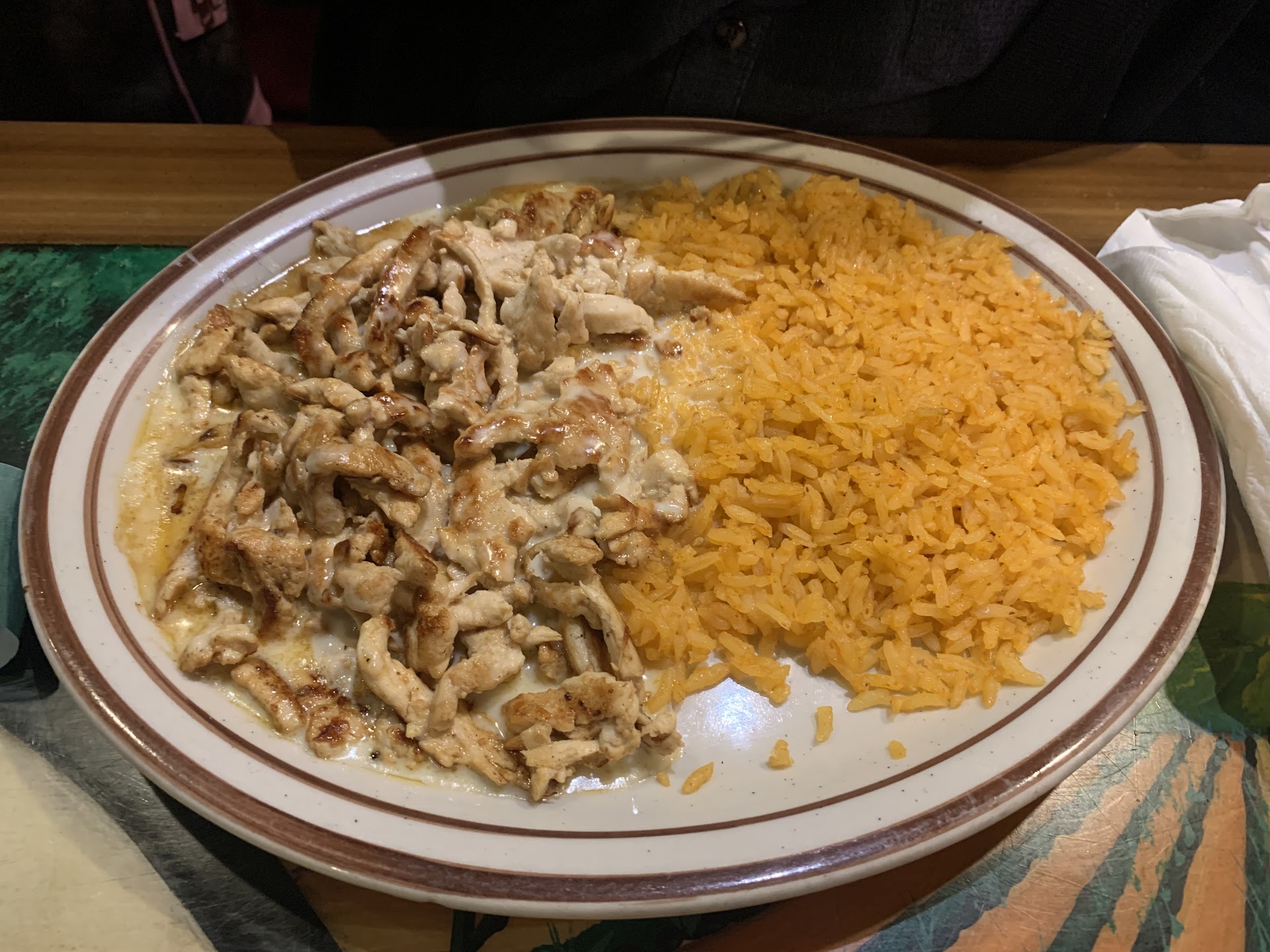 This place has the same decor that seemingly every Mexican restaurant in Indiana has: colorful chairs and artwork and the tissue flags hanging from the ceiling. Our waitress was ok at best, friendly enough just slow and had to make several trips throughout our dinner and long waitsbfor extra dishes and drinks. She wasn't around much either. There are two main reasons why I won't go back. First, ALL of menus were dirty. They are the heavy multifold kind. All slick with grease and salsa. And other sauces. And other food. The two skillet style dishes that came had little pot holder sleeves over the hot handles. Both had dried food encrusted that was so bad I took them both off and tossed them onto the unoccupied table next to us. That didn't for right there. They serve a lot of fajitas there. It was obviously and visible so they know and serve it like that any way. If the dont give a damn about that, what else are they passing off back in the kitchen? Gross and disresptful. Second, the food was low quality and bland. My chicken was over cooked and dry. The beans and rice was more like many non Mexicans idea of beans and rice. Like white rice with color- no flavor. Beans were thin and ho hum. The tortillas were clearly the cheapest that restaurant supply offers. The servings are big enough and the prices are good. There are better places, scratch that, anywhere is better than here. ALL other Avon Mexican places that I've been to were better. If anyone says this place is good, then they have never had good Mexican. Sadly, the...