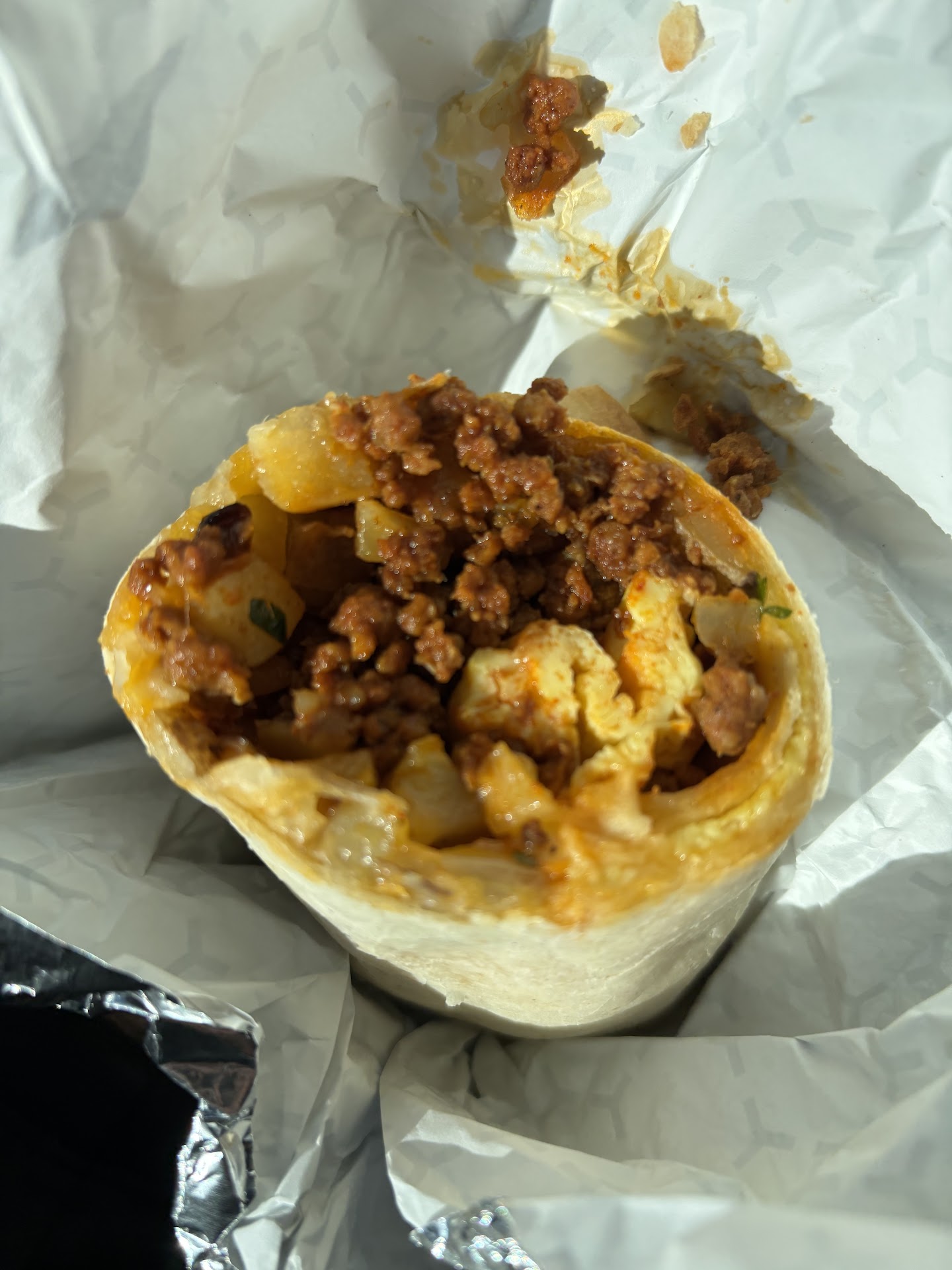 A big frustration was that the breakfast burrito ordered without beans came WITH beans. I know the kitchen was busy but the order literally said NO beans.