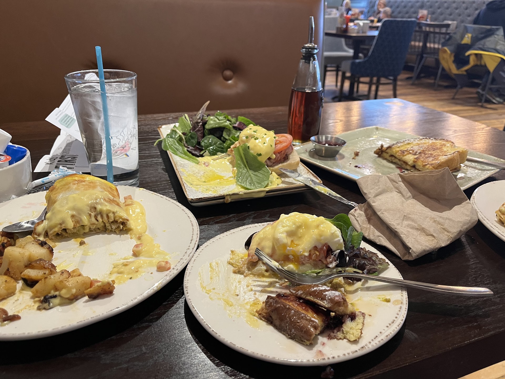 What specifically inspired me to write this review is our server Kayla (I hope that's right!) from this morning. When we received our food, one person at our table did not. That's my partner, and he has a serious peanut/tree nut allergy. Kayla informed us that when she herself saw a kitchen employee handling his food without care to allergens (she specifically said the spot where the food was being prepared), she made them put the food back and start over. It might seem like a small favor, but was actually a huge blessing. It's hard to come into a restaurant with (or with someone who has) food allergies and feel completely relaxed about it. How do you REALLY know they're back there in the kitchen with safe practices? It was Kayla who went above and beyond for my partner so we could feel unbridled excitement and full enjoyment to eat our food - no anxiety.