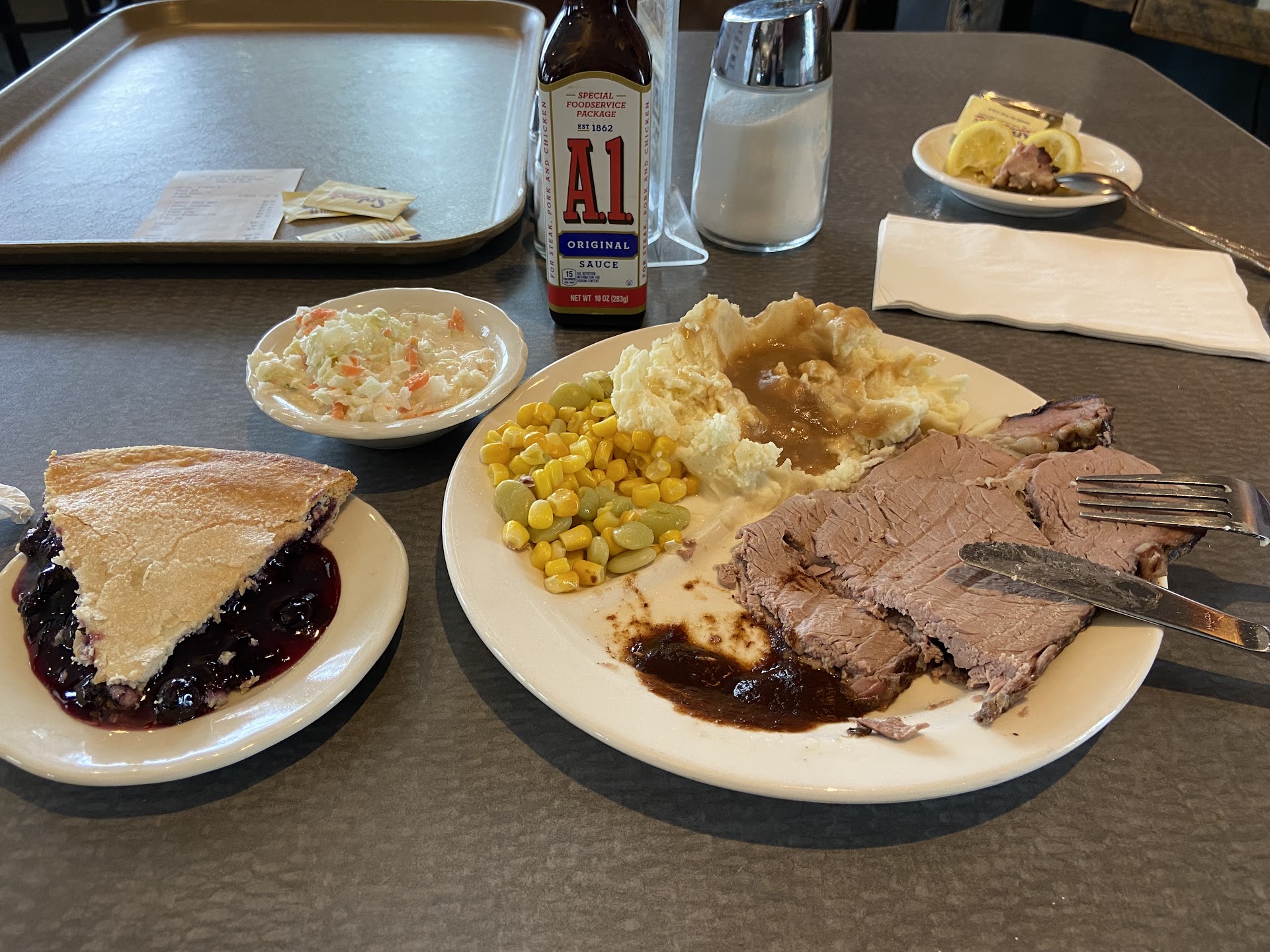 Read moreFirst of all the staff was friendly and helpful, the place is very clean. But I was disappointed in the food , everything appeared fresh and was presented well. But my complaint is this, I went in at meal time not to many customers. I ordered the blue plate special and was told the meat was bbq chicken. I like chicken and dark meat as well so I took that. Had green beans and broccoli with it. It came with choice of roll and I chose cinnamon roll. My chicken was terribly dry and broccoli seemed over cooked and dry. I also got a salad which looked very nice, you could get croutons, tomatoes and cheese. I had tomatoes and cheese. The tomatoes were diced which was fine but as everyone knows diced tomatoes make a lot of juice in pan, I don’t think a slotted spoon was used which would have helped. In the end my salad was wet and unappetizing. The cinnamon roll was dry and cold. The price for the blue plate special was 14.29 so wasn’t bad at all for what you received. The salad was 5.09 and the tea was 3.29, the total was 24.70. I did leave a tip so to say the least very disappointed and felt I could have went to a steak house instead. I hope that when I give it another try the food will be so...