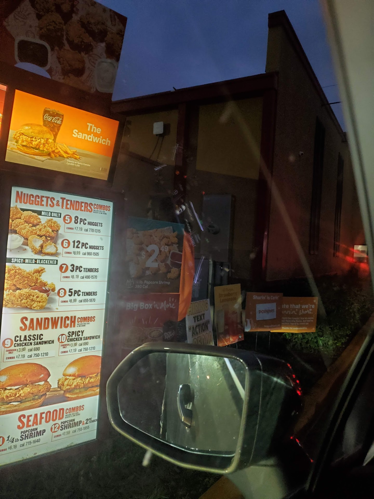 I absolutely love Popeye's. That's why I gave this place 3 chances. 1st, they didn't have tenders, 2nd time their tenders weren't thawed and it took them 6 min to take my order. 3rd time they took my order. A regular tender meal. I get to the window and pay the normal price but was then handed a small drink. I asked about it. Turns out that location is no longer using large cups for meals. It's the same price but you'll get a small cup. Well ok. I also ordered dipping sauce. None was in the bag. I pulled around and went in. While waiting I heard 3 employees talking rude about me. I'm not sure about you but when I frequently order food and get a specific size and then you get a smaller size; I feel you would ask questions too. Now I wasn't rude at all, just questioned what happened.