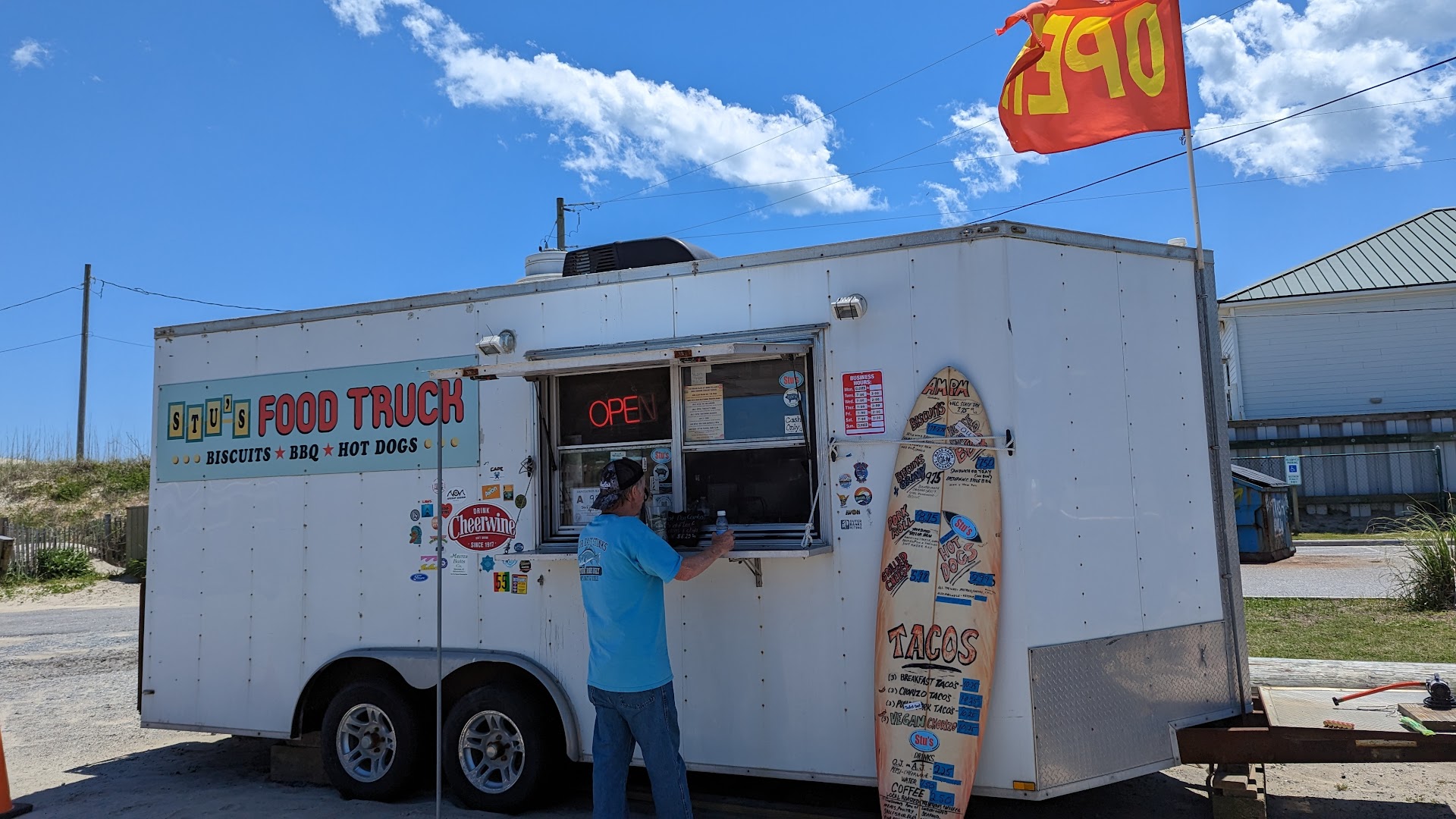 Read moreStu's Food Truck has the most amazing food. If you are looking for great homemade from scratch food, then this is the place to go. They have the best homemade biscuits, amazing sausage gravy, breakfast tacos, and the only place on Hatteras Island that has Porkroll sandwiches. Their homemade Bar-B-Que and coleslaw, homemade chorizo tacos, grilled cheese sandwiches, hot dogs, and much more. I have been there more times than I can count, and they do not disappoint! Do yourself a favor and don't miss a trip to this food truck!! Oh yeah, bring cash they are cash only and it's worth...