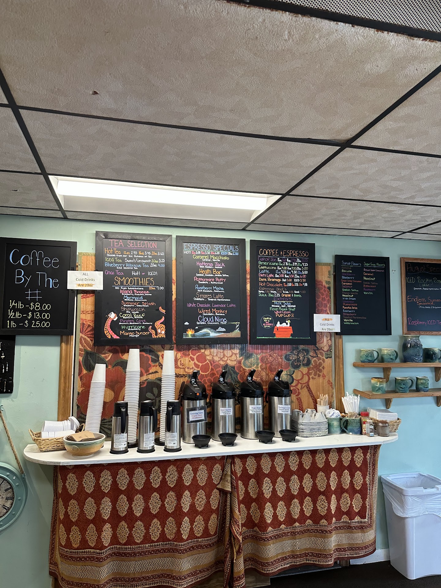 Read moreFirst time stopping at the Uglie Mugs Coffee Shop since they had great reviews online! The store is cute and has a lot of character with the artwork/funky mugs plus the drink menu has a nice selection. However, the prices/food case/service was horrible. The baristas had a friend in the back of the store talking to them the whole time and they kept getting distracted and stop making drinks to talk to their friend which caused a line to go out the door. Midway through waiting to order one of the barista started counting his tips out of the tip jar (assuming he was done with his shift) so there was only one girl making drinks. There were a weak selection of baked goods and most of them looked old and there were flies in the case. I ordered a large iced tea and a small mocha but was told there were no lids for large cups so I changed the iced tea to a small and it was almost $10 for both drinks - seems high for two 12oz drinks. This is our first and last time ever...
