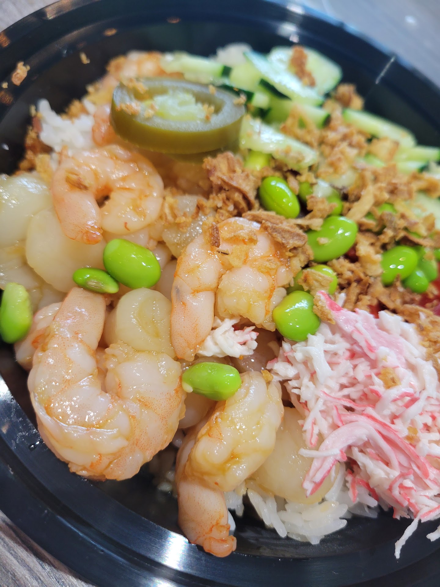 Read moreLots of great seafood, vegetables, sauces and topping choices. Love that you can get it on rice or salad mix, or why choose, have both! Everything is very fresh and delicious! The Luau tuna is my favorite, the marinade has a great flavor! The kimchi shrimp and spicy tuna I tried were great too. I noticed there was a comment that said it was bland, but perhaps they aren't used to Japanese food. I lived in Tokyo for 4 years and it took a bit of a palate adjustment because we Americans use lots of spices and ketchup and even salsa here in Arizona. Japanese cuisine is designed to very subtly enhance and bring out the natural flavor of foods without overwhelming them. Like their art, the Japanese esthetic is, less is more. Same thing with the size of the entree, no super size here like we have stretched our American stomachs to expect. I was happy with my regular size, but they do offer a larger one too. Great way to kick off the New Year resolutions, healthy food, healthy portion size and so delicious you don't mind...