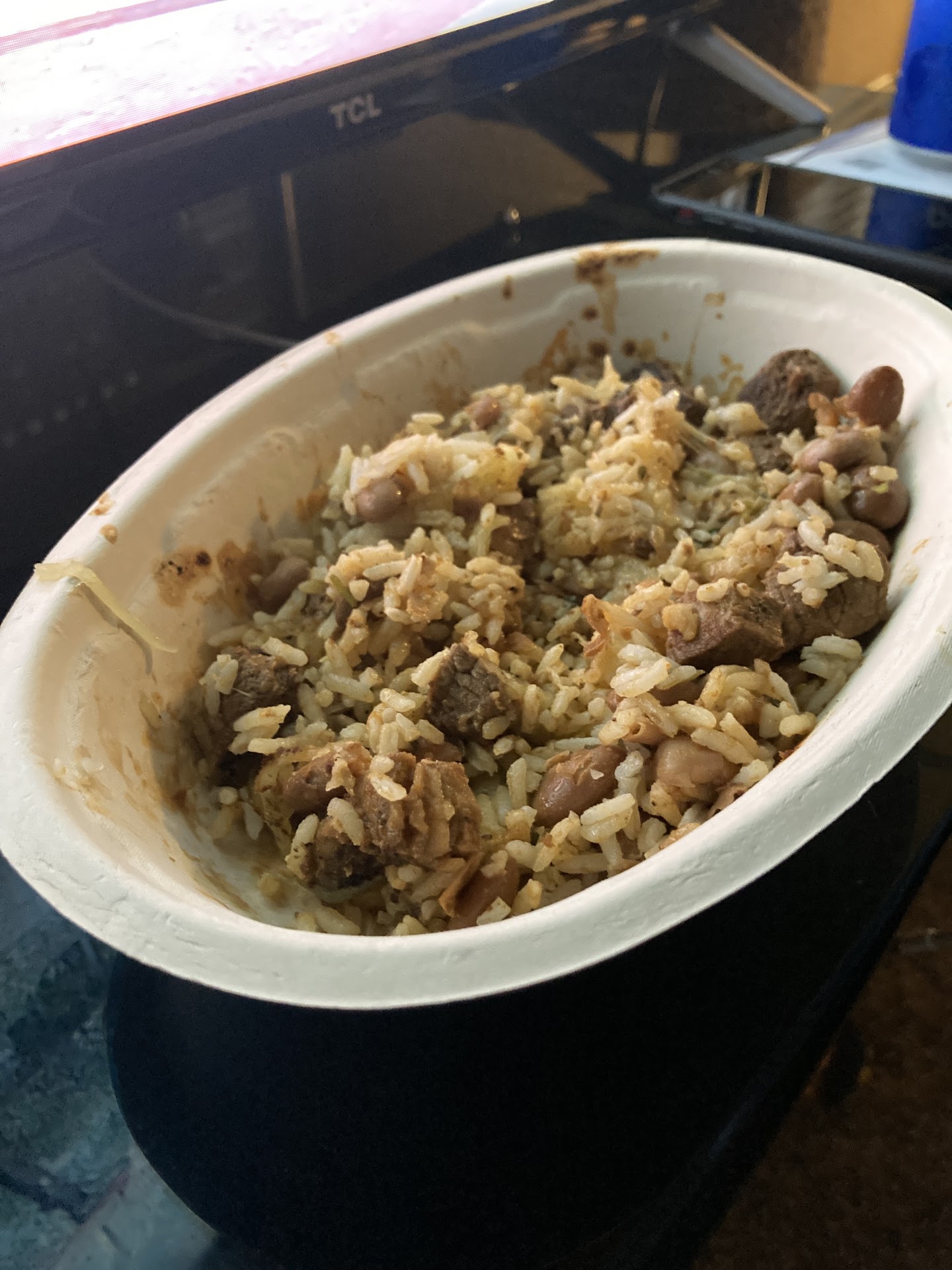 I took a chance & went earlier around 8 something. Ordered in person. There was a line so I waited. There were also 4 food delivery servers waiting. Everything looked good and it was a little line I waited in but it wasnât too long bc someone came and sped things up. The lemonade was gone, so no drink for me bc the fountain I wasnât interested in. I checked out, no forks but 3 spoons left. I took two and a handful of napkins. Got home & realized the sour cream they put on the side they forgot to put in my bag, & I didnât realize it bc I was moving down the line. I opened my food and began to eat and thereâs the hard rice.