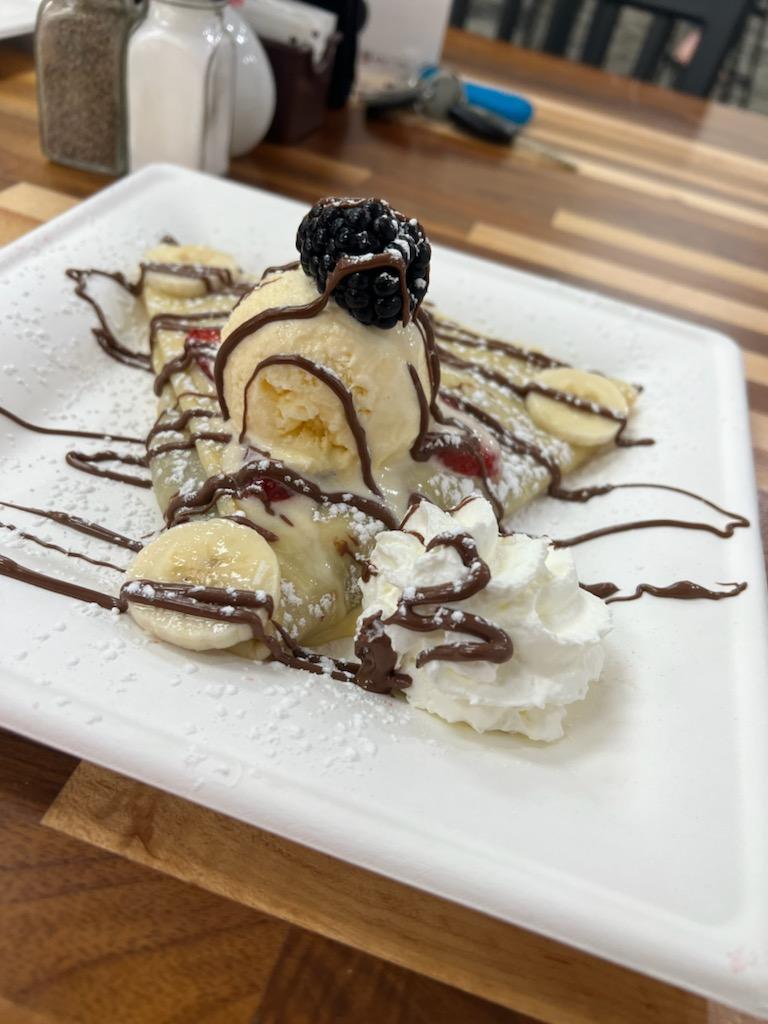 This is such a quaint, peaceful place to eat breakfast or brunch. We hardly have time & breakfast is always on the go. Enjoy coffee or hot chocolate for non coffee drinkers like me if you have more time. They have outside dining as well perfect for cooler days. We will be back to try other crepes & enjoy the...