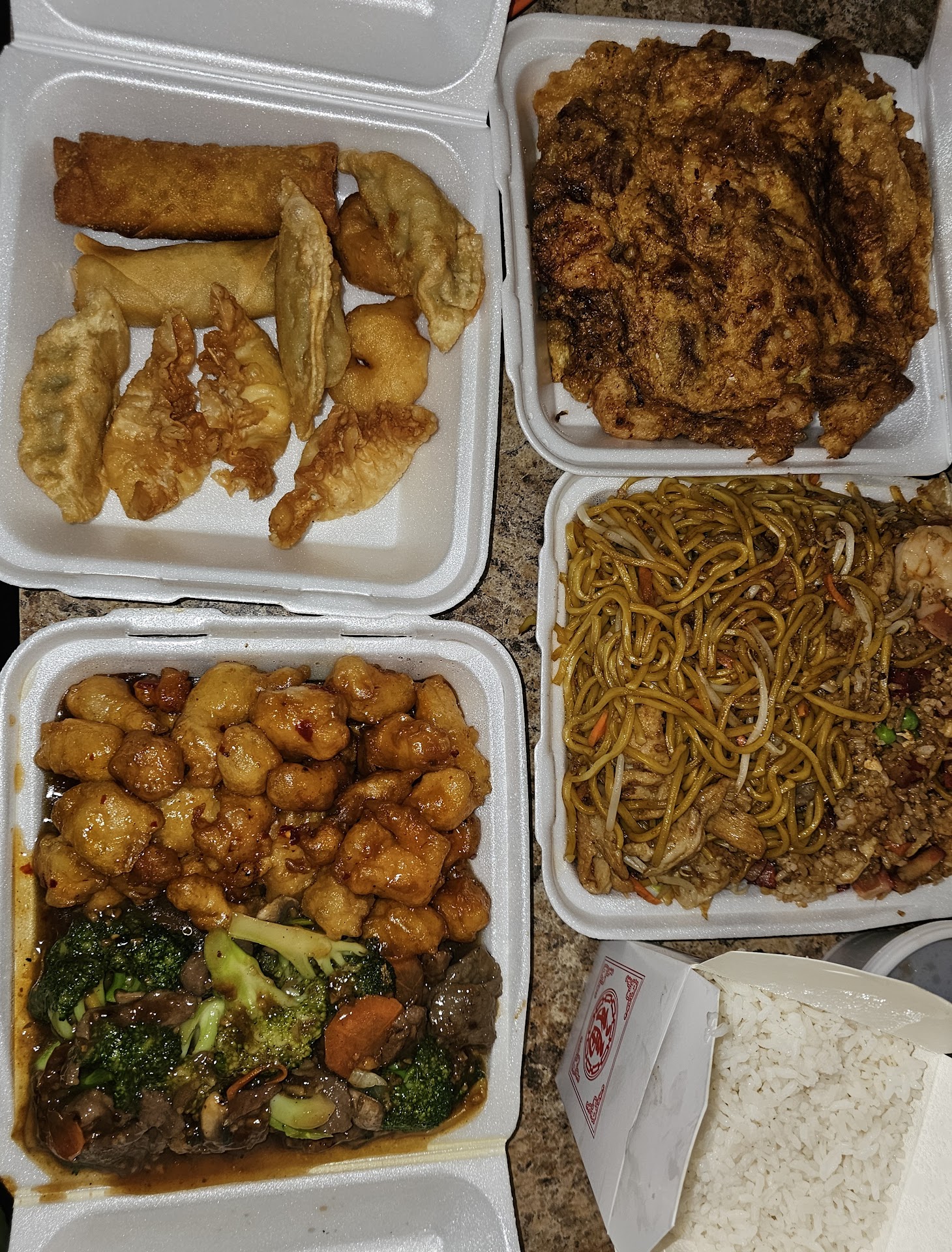 This was our first time at Dragon Garden Express. I wish I could give it a glowing review, but I cannot. We placed a fairly large order Saturday afternoon for pickup on Sunday, so plenty of advance notice. We still had to wait a short time when we arrived at our scheduled pickup time. Not too long, but it should have been ready. Some items were OK, some were disapointing. There wasn't really anything that I can say would make me want to order from here, again. I write this review, not to be nasty, but to let them know why we were not excited about what we received: ON THE POSITIVE SIDE: Their portions are very generous, and they do not skimp on the proteins. THE DOWNSIDE: Many of the dishes just lacked flavor. HOT AND SOUR SOUP (5-stars): Good. Hubby really liked it. VEGE SPRING ROLLS (2-stars): Tough and the little bit of stuffing was mushy. Not much flavor. CHICKEN EGG ROLLS (2-stars): Same as the Spring Rolls. In fact, they even tasted the same. FRIED SHRIMP (1-star): Sad. They were not butterflied/ lightly battered, as normal. Just a whole shrimp very heavily breaded - almost 1/4" thick. Way too much breading. MONGOLIAN BEEF (4.5-stars): Good flavor, a lot of very tender beef/ crisp onions. We asked for extra hot/spicy, but it was not a bit hot. Scallions were overcooked and tough. The scallions should be added after the beef and regular onions are cooked so they stay crispy. KUNG PAO CHICKEN (3.5 to 4 -stars): So-So. We asked for extra spicy, but there was barely a hint of spice. Did have a lot of chicken. WALNUT SHRIMP (0-stars): I considered this a total fail. Honey Walnut Shrimp is usually made with a very thin, light layer of batter, fried (as with Orange Chicken), then coated in a mayonnaise sauce. This dish was nothing more than their regular fried shrimp (with the quarter-inch batter), coated with a honey sauce, with a little smear of mayo/honey on the bottom of the carryout container (no mayo sauce coating the shrimp), and a few honey walnuts. Not at all what we've ever been served anywhere else. It came with a lot of broccoli, which I have never seen served with this dish. It is supposed to be "honey walnuts" & shrimp, not "honey shrimp" & walnuts. If you like Honey Walnut Shrimp, this is not the place to order it. Sorry. HOUSE FRIED RICE (2-star): It was so-so...Very bland. The shrimp and chicken were tender, but the pork was overcooked and tough. HOUSE CHOW MEIN/CHOP SUEY (2-stars): First of all, which is it? Couldn't figure that out. Flavor was, as with other items, rather bland. Decent mix of protein and veges, but not really much flavor. We asked to have it made spicy. No spice at all. Absolutely swimming in sauce. Way too much...