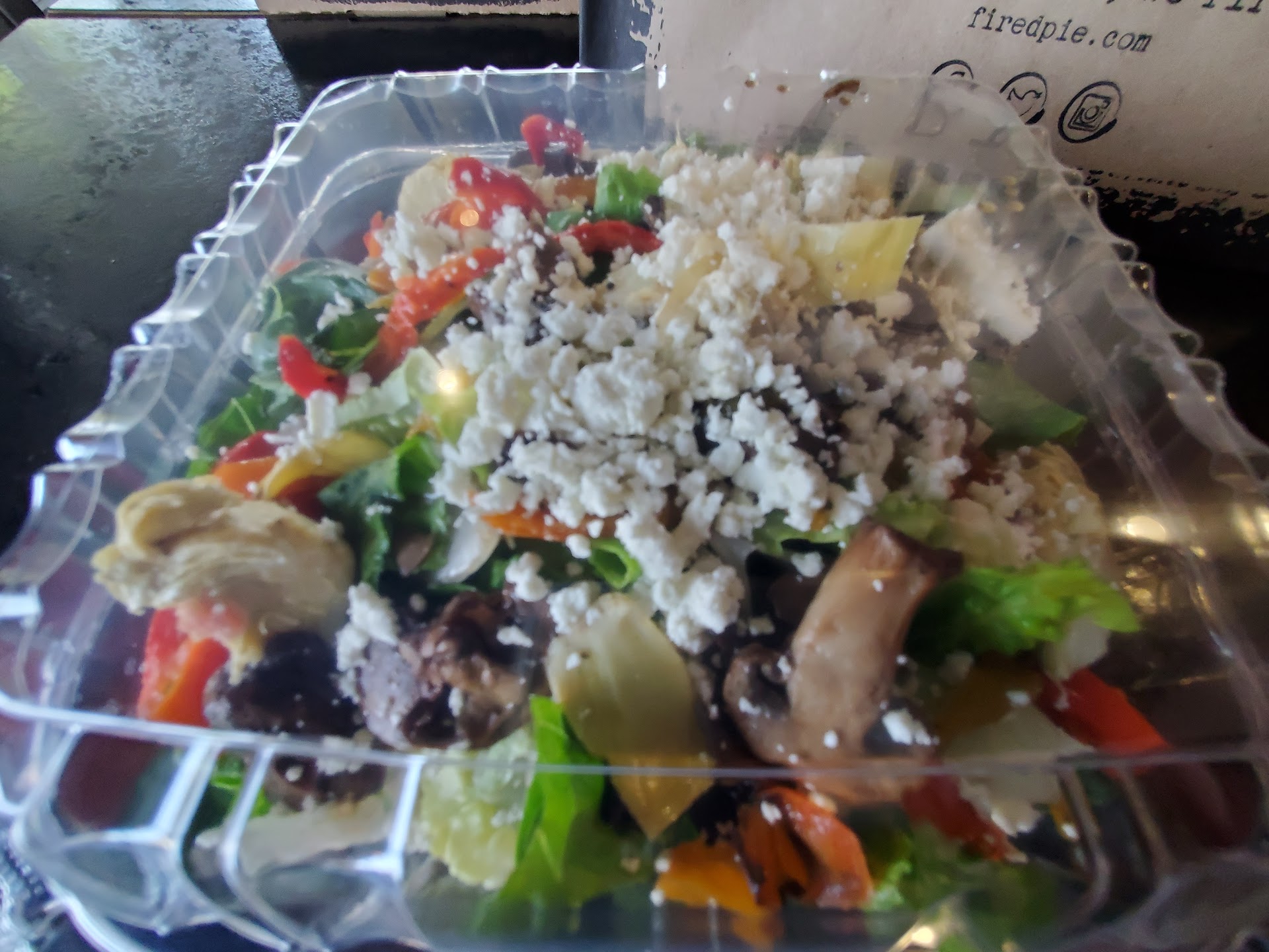 Read morePizzas are good and priced well. We went in thinking we'd eat in but the place was empty with no vibe so we decided to get order to go. People behind counter pleasant but not friendly, we ordered a pizza, garlic cheese crisp and salad. Menu did not show sauce or individual toppings separately, one had to read the arious pre-designed pizzas to understand/figure out what sauces and topping available. We paid in cash and sat at a Hightop while we waited. I planned to leave a tip when our food arrived so as to pay the bus person as well for cleaning. However...the pizza and crisp came out and no salad. A pleasant woman had previously alerted us to an ingredient that was not available so I assumed they were still making the salad. Especially since the man who we paid was also the one who brought out our food. We sat there for 5 more minutes. I went back to cash register and asked if they forgot about our salad. The man looks at me and then opens a refrigerator, pulls out a salad and asked me if that is my salad. ?? How do I know? Anyway someone else behind counter confirmed it was ours. Not sure if this was so.e sort of passive aggressive response to not tipping at counter or just weird customer service. Needless to say, we did not leave a tip. And there are lots of pizza joints we can go...