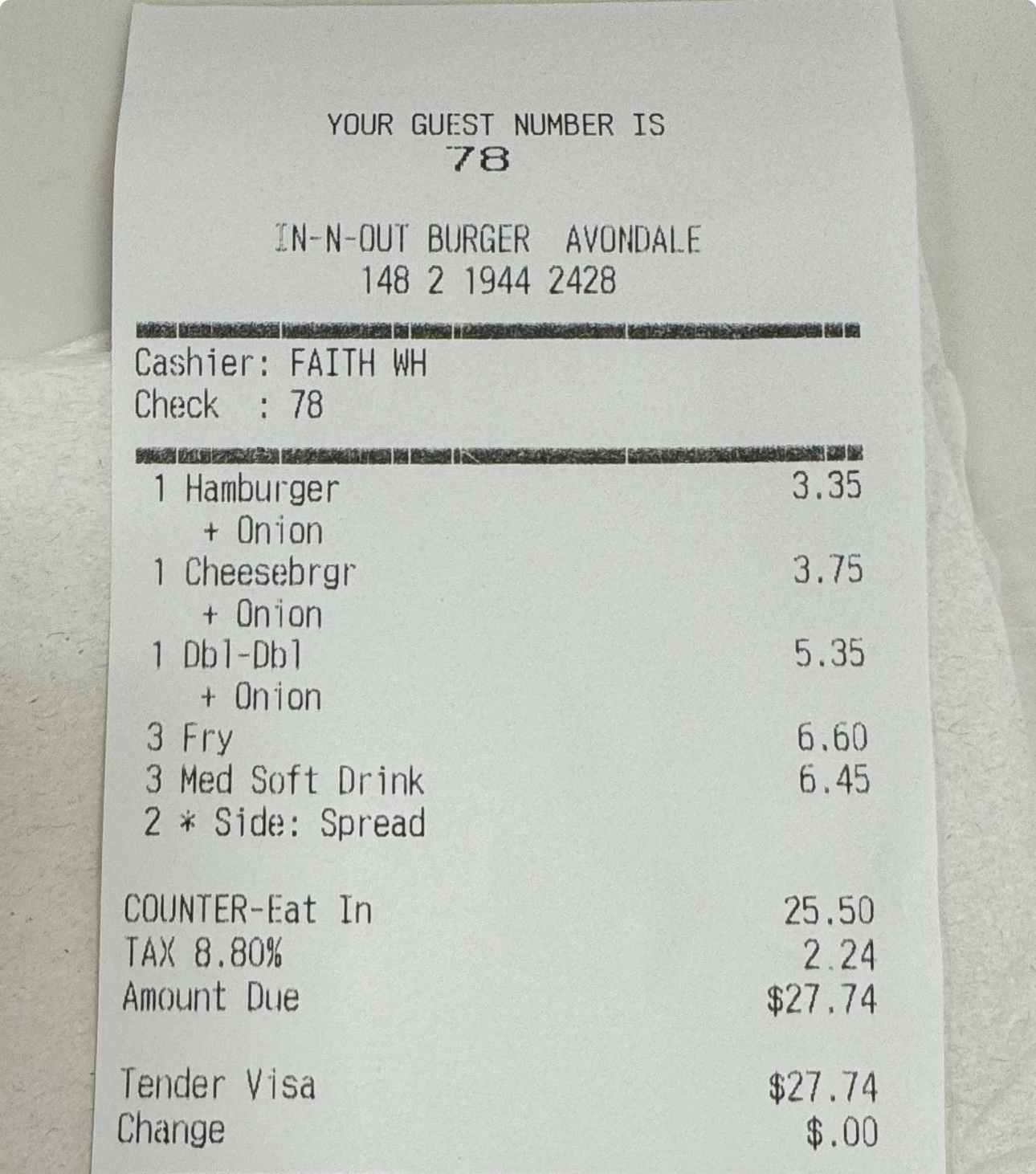 Now, don't tell me "Well, you really should try In-N-Out in California". If you guys can't get food right here in AZ, then why would I drive hundreds of miles to try it somewhere else. Also, don't tell me "Well, you really need to order it Animal Style" or whatever off menu variation you dreamt up in your fever dreams. If the food isn't good enough to stand on its own without some never before heard of food and condiment Frankenstein combination, then your food just isn't good.