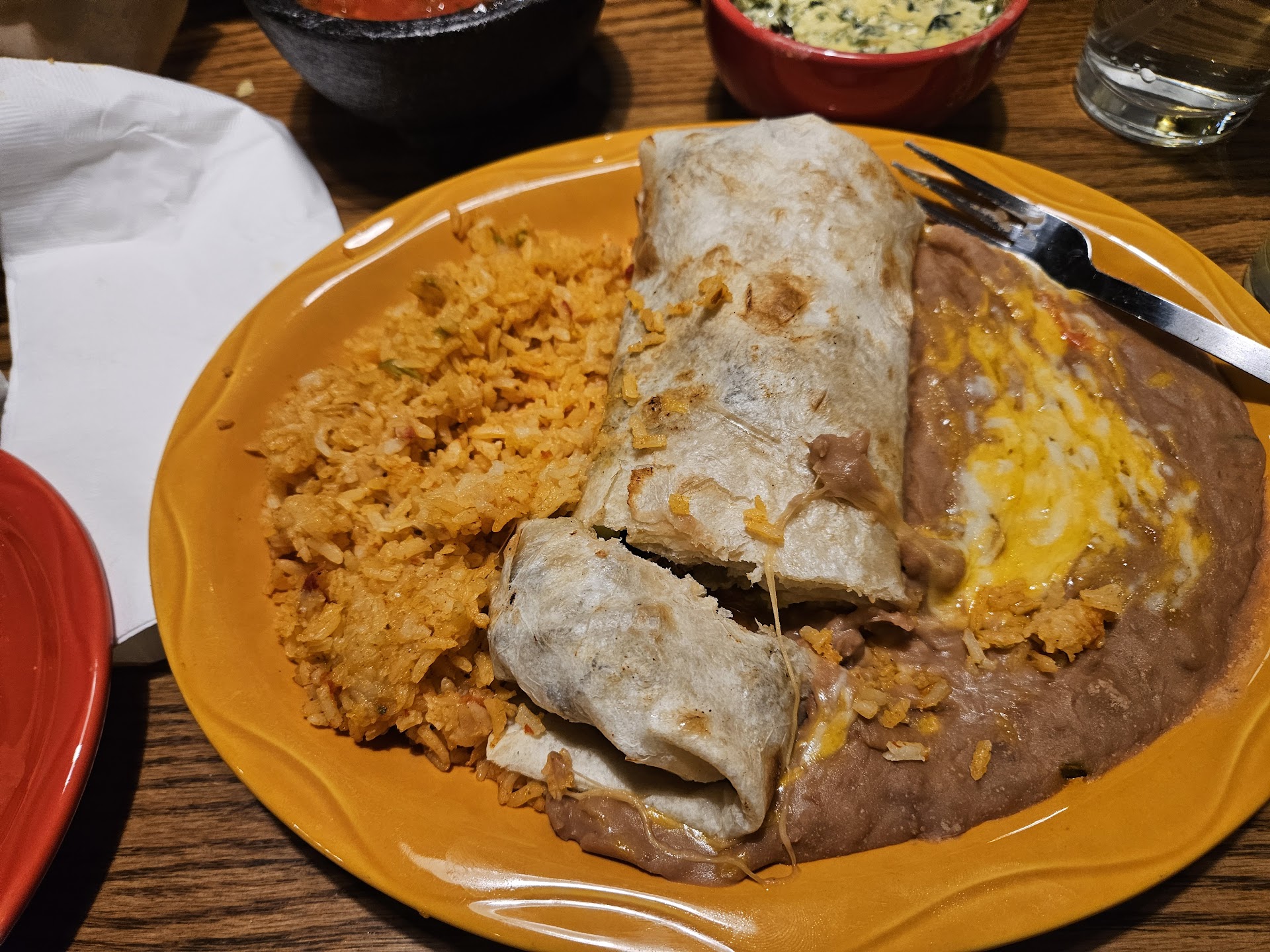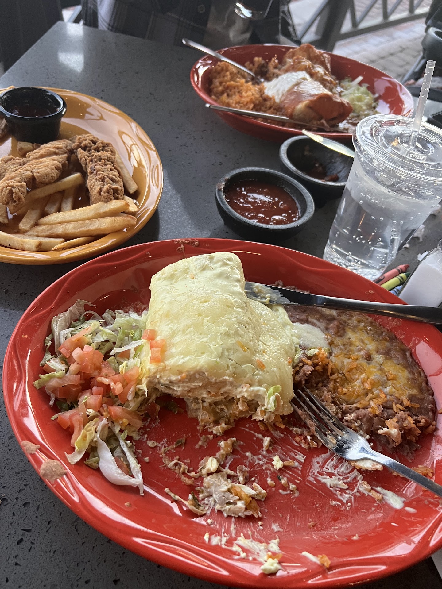 We arrived at around 7pm and the restaurant was not very busy but we still sat at the table for at least 10 minutes prior to being approached by a server and asked for our drink order. My mom wanted to order the margarita flight but the server informed us that they were out of the glasses they use and so we could not order it. We then asked for water and Dr. Pepper. The server came back probably 3-5 minutes later telling us they are out of Dr. Pepper, so we just got waters only. About 5-8 minutes later we finally got our water and the chips and salsa. We ordered our food at this time, I ordered the red corn taquitos and asked for them to be brought out first before my entree- which did not happen and they came with my regular food. I had ordered the 2+2 Mex & Match and ordered two of my items as a Baja chicken enchilada and the tortilla soup with no avocado. I received a Baja spinach enchilada and tortilla soup with avocado. My mom ordered the fish tacos with beans only no rice (rice upsets her stomach and she can’t eat it). The plate came with rice that covered 80% of her refried beans making them inedible. I asked the server if we could get a separate side of refried beans to which the server then delivered us a side of black beans. All food mistakes were eventually corrected but by the time we received the correct food we had been there an hour just wanted to go home and packed 85% of it to go. When we got the bill, it still had the Dr. Pepper charges on it, which she did remove after asked.