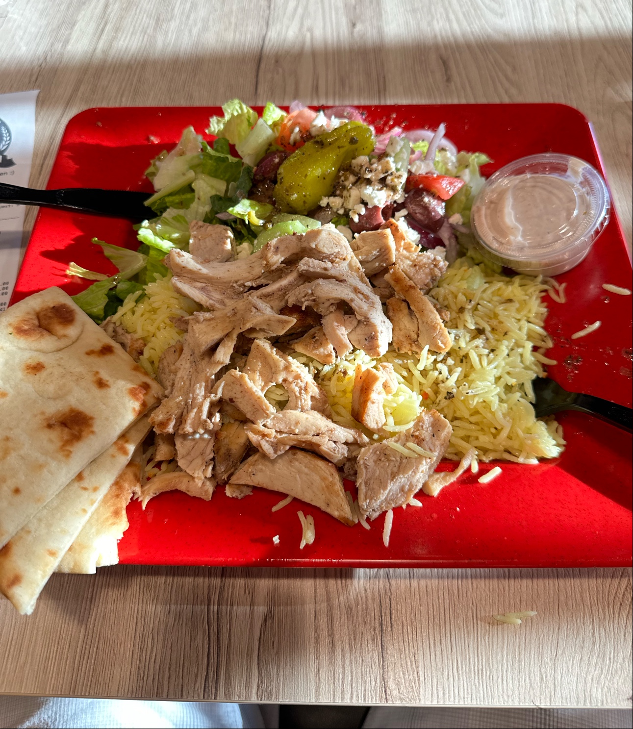 Read moreI usually love this place and don't mind spending $70 plus every-time I go but tonight I really was upset with the service. The order was not ready at the time they stated online which is fine since it's being made fresh, but that's not the reason for the bad review. I usually do not check my order before I leave because I trust them but today I did. I paid extra for a few taziki sauces so I had to make sure they were in the bag. They were not. Since they did not provide me a copy of the receipt I pulled it up, showed the young lady behind the counter and asked her for the sauces. She got them and said next time open the box because that's where they put them to which I told her I did do so. As little as it may seem the fact the girl thought it was alright to tell me to check I thought was rude. I get you don't want to rob your company of supplies and hand them out for free but they are showing you they paid and the order was quite expensive plus I had to wait. It wouldn't take much to give the sauce and go about your day...