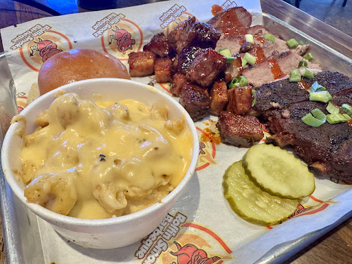 I hardly ever base my choice of new restaurant on the $$ amount, but on the photos that customers post. This place did not disappoint. We came with hungry eyes and wanted to try as much as we could in one sitting. We had one Beef Rib (it was as big as my 1 year old's face 😮), Trio Platter with Sliced Brisket, Pulled Pork, Hot Link, a side of Mac n Cheese and Loaded Mash. My goodness, every bite just kept getting better and better. The Rib (which is what I came for), damn near melted in my mouth. OH! They also have Kool-Aid 🤯