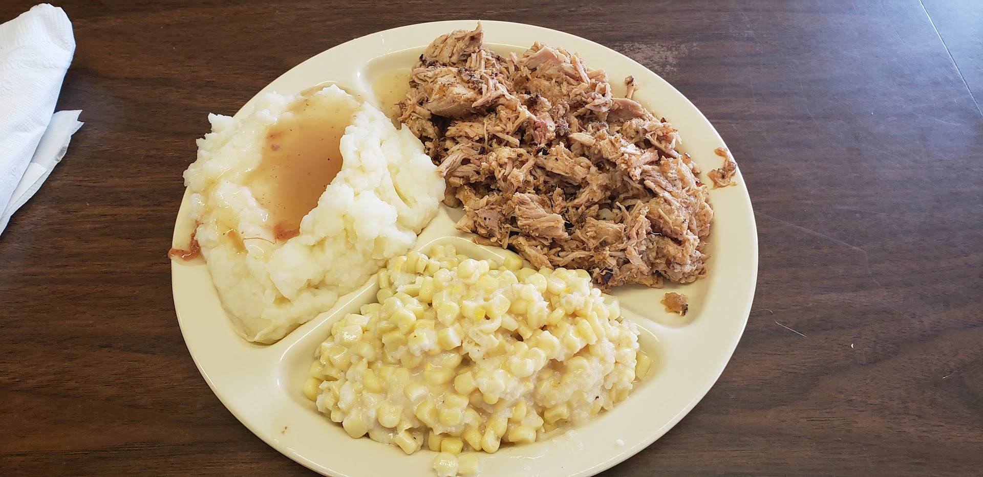 Read moreThe restaurant was recommended by a local, so we decided to try it out even though I'm not too fond of Eastern NC barbeque. When we walked in we had to figure out the 'system' to get fed. You get in line and walk past the food and order as you go. There is no menu posted until you get to the actual food - hurry up, make up your mind. Several selections which were available did not appear on the menu - like french fries ! ! At the end of the line I was informed they did not take plastic, but there was an ATM over in the corner of the room. To get $20 it cost an extra $2.50 which made the overpriced food even pricier. The owner was bustling around, and I stopped to question him about the surprise policy. Not only was he unapologetic, but said he didn't have any credit cards and didn't know why anyone did ! ! As far as I'm concerned, the pig on the sign was...