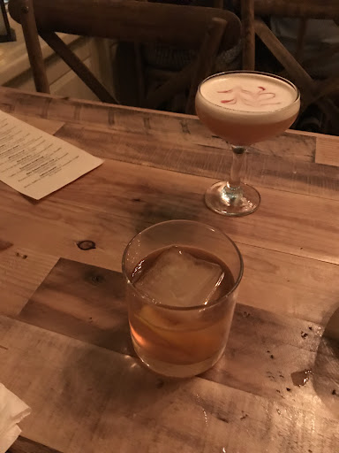 'New kid on the block' nice little place with friendly dynamic staff reception and innovative bar menu. Interiors in venue of 'Industrial Chic' design where wine crates are utilized to display the selection. Rough wooden shelves, stabilized with pipe fixtures, house the 'hard stuff'. Their draw is the craft cocktails. Well primped and pretty to look at and much effort is exercised to shake them with panache. But confess staunch limitations to classic martinis and Kir (absent from cocktail menu). Hence, hesitation to venture into trendy candy cocktails. However, being more of a 'foodie' than a 'drinkie', I think the cocktails, if thick whipped with ice, would have great potential as dessert granitas or spiked summer sherbets.