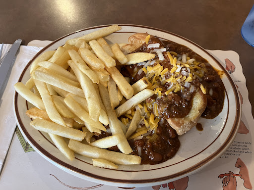 The menu is extensive. I ordered the chili dog with fries and a water. Had a hunch the portion size would be big, and it was! Hard to find the dog since it was buried in (obviously made in house) chili. Just the right amount of cheese melted on top too.