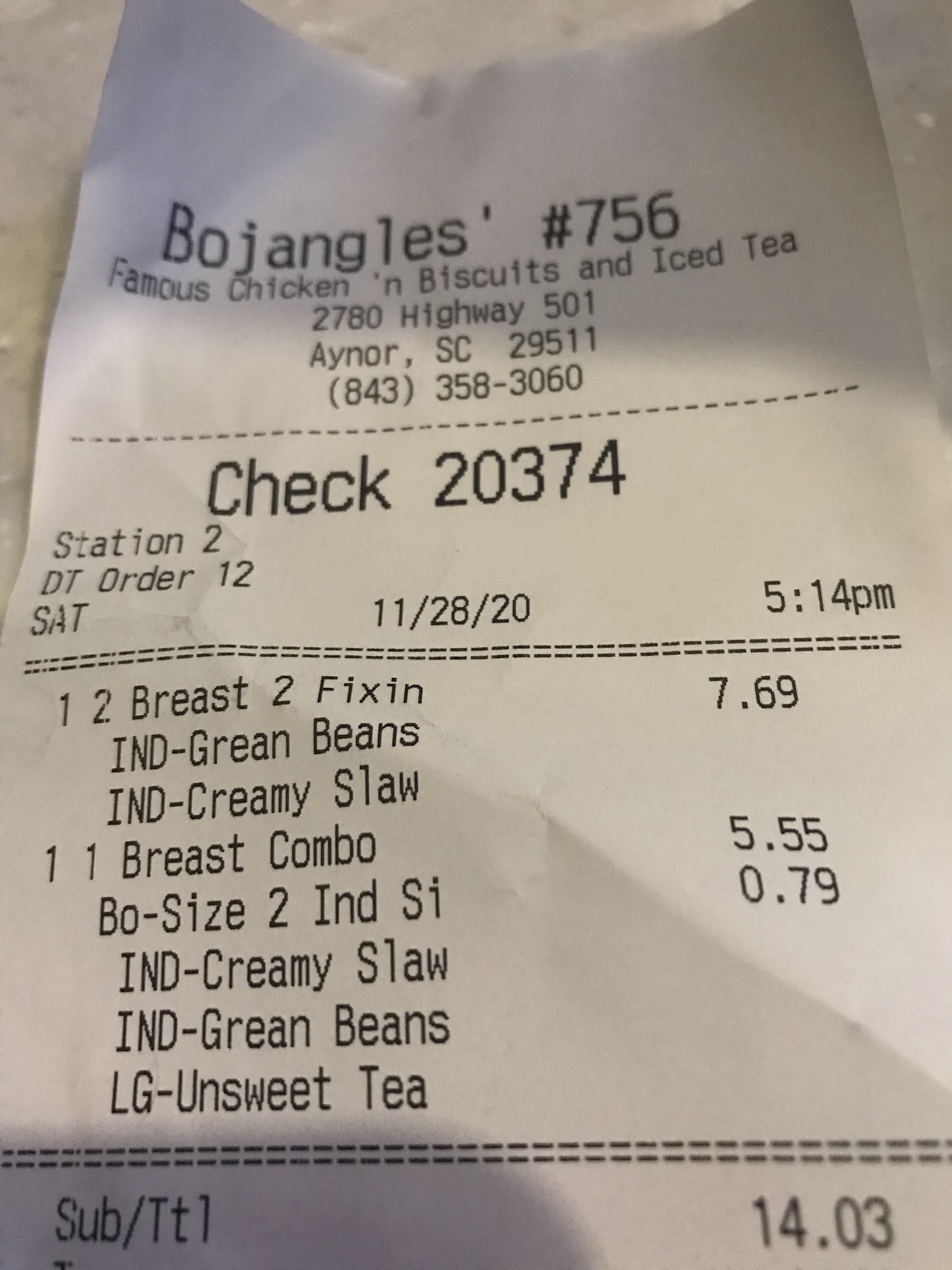Went through the drive through line to order lunch for my family. I asked for a side of dirty rice and they said it would be about 20 minutes until they had more. That’s fine, I don’t mind waiting because who goes to Bojangles and leaves without dirty rice right? Anyway, I pull up to the window to pay and the girl was SO rude. Like uncalled for rude. Told me to pull under the tree to wait. Fine. So I did. AN HOUR LATER, a different girl walks out and says “oh I think this is your ticket, we are still waiting on chicken”… so I say “um, I was only waiting on rice, no one said anything about chicken” and she says “yeah both rice and chicken. All we have is dark meat tho if you want that”…. so I sat in the parking lot that whole time trying to give them the benefit of the doubt that maybe they were just busy, but instead they hadn’t even started my order yet, had rice done already and ran out of chicken while giving others their orders just because I waited on rice. SMH. I will NEVER pull back up to Aynor Bojangles again. I’m sure they won’t lose a lick of sleep for it but I guarantee if this happened to someone else they probably wouldn’t have been as nice as I was about it....