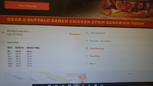 Read moreWhataburger is my absolute favorite burger spot, unfortunately this location has forced me to leave a bad review after numerous issues over the past year of visiting this location since moving to Azle. Last night we made on online order to avoid the inevitable 30 minute wait, the app said the order would be ready at 4:43, we arrived at 4:50 and did not get our food until 5:25. The thing that set me off was when I was grabbing some spicy ketchup off the tray on the online pick up order counter and the lady takes the tray and sets it under the counter and tells me if I specified what ketchup I wanted on the app then they would already have it in the bag! The funny thing about it is that I DID add the ketchup and it wasn't in the bag. And to top it off I also customized two of my patty melts with bacon, extra cheese, extra creamy pepper and extra grilled onions, did either of my patty melts come with the extra add ons that I paid for? No, of course not, this is a recurring issue. I guarantee you over this past year I've probably spent 50 bucks for add ons that weren't on my burgers as we eat here once a week but I've just accepted that this location sucks but it's the only one around. I've never complained once and I'm always friendly to the staff. My point is that I've let all these issues go unresolved and this lady has the nerve to take the ketchup from me!!! They obviously don't care about customer service because they know they're the only game in town and everyone will come...
