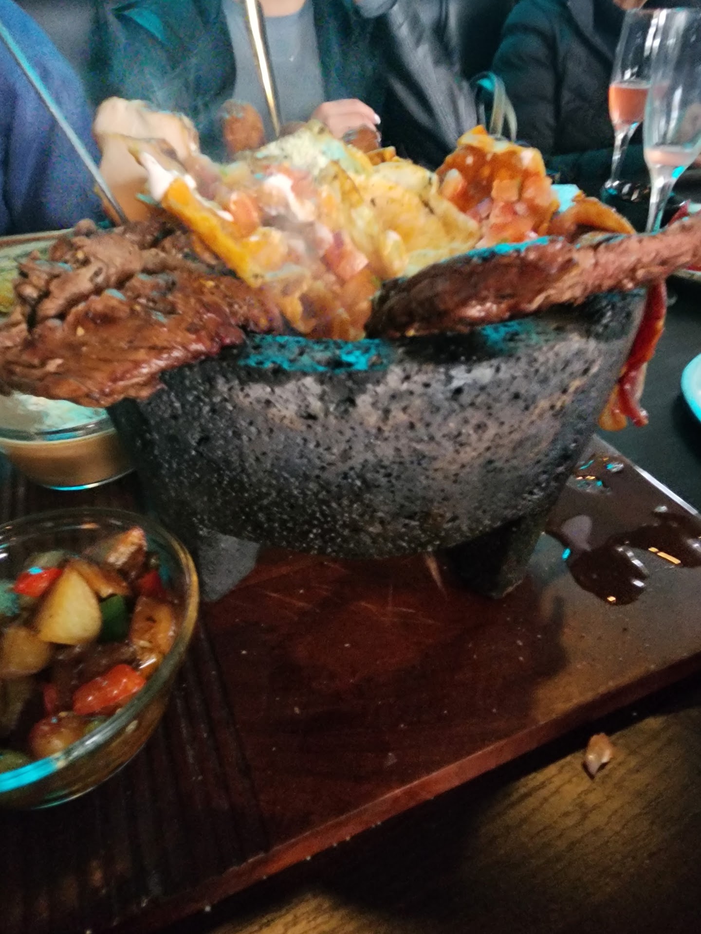 We got seated right away. Shortly thereafter, the server came to our table and told us many options were unavailable (sushi, charcuterie board, and a couple of others). We asked if the potato taquitos were available, as advertised on their menu. She returned a minute later to tell us they were not available. As the vegan in the party, that left me with the one option I didn't want: veggie tacos. (I'm a runner and needed carbs for dinner). I asked whether the tortilla soup had any meat in it, and she said it didn't, "but it's just made with chicken stock." Some basic knowledge of vegetarian/vegan palates would've been helpful. Then the girl proceeded to tell me they had salmon, fish tacos, asada, etc. She also kept on pushing the endless drinks like the margaritas and the margarita flight for $45!