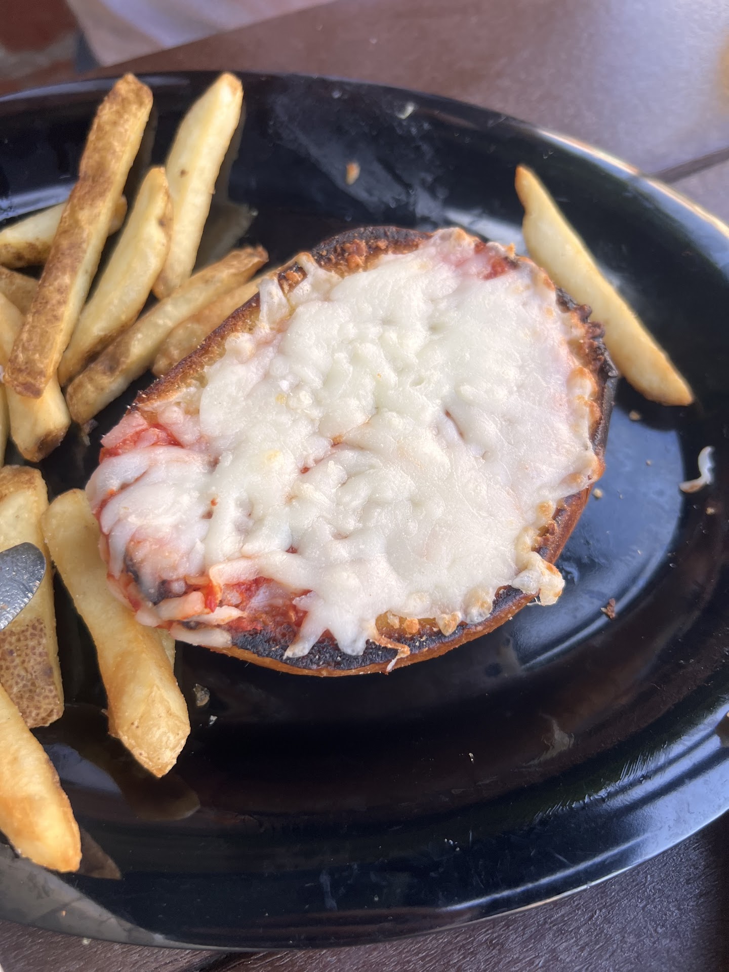 The kids pizzas though (see photo) was just burger buns with sauce and cheeseā¦.but the cheese wasnāt even melted all the way! Cāmon now.