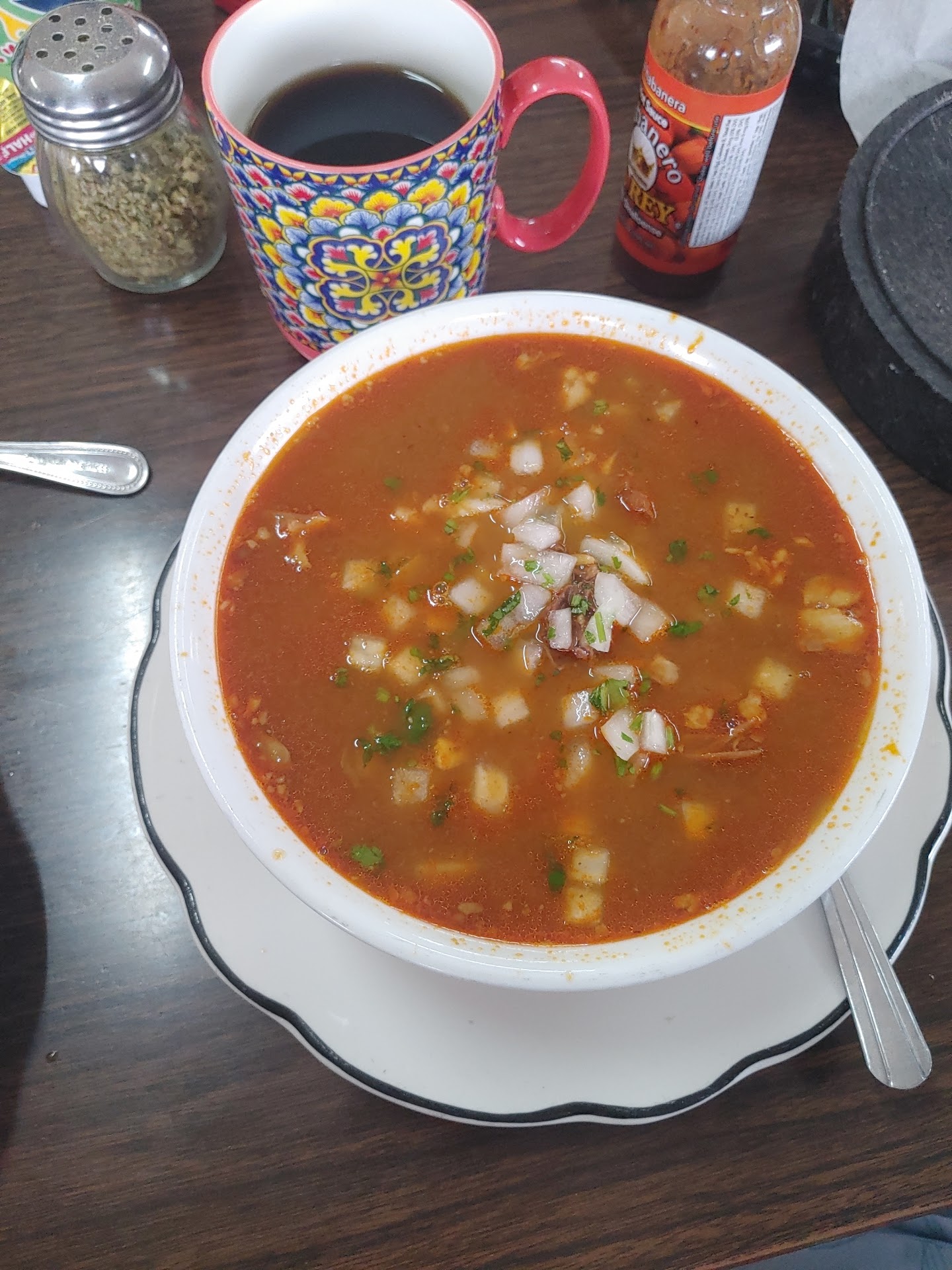 Read moreI am torn with this review as with this place it’s always a hit or miss, some things are excellent while others are pretty bad. I have tried their menudo and their shrimp soup and they are both excellent specially with the oil chili and delicious hand made tortillas. their micheladas were absolutely amazing the first time I tried them, while the second time they used bad limes on them and it made the michelada absolutely bitter and un drinkable , the guacamole I ordered was black, the shrimp coktel was not good, as it was very fishi and very stinky and shrimp were a bit rubbery and it had a bad aftertaste, The pozole was average not bad but not great. But what I did not like was the birria. My first impression as I opened it was the awful smell, I think its goat meat which I was not expecting, I was not advised but it can also be my bad for not asking. but then it seemed as if they gave me the left overs, because there was hardly any meat , mostly caldo and chunks of fat . I would definitely never order that again. This place has a-lot of potential but they need to have higher quality standards to have better consistency in the quality...