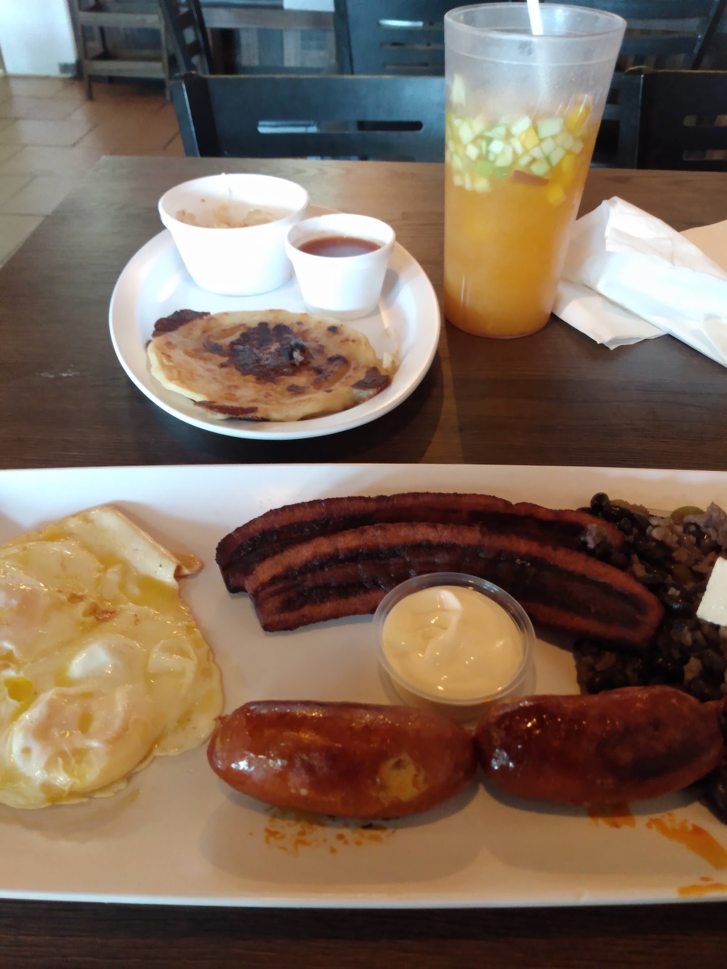 Read moreI like and enjoy pupusas. But this time I did not get them. I got a steak combo with rice beans and lettuce. It was delicious. The red hot sauce was delicious. I really enjoy the ensalada drink. It is always delicious. It is one of my favorite drinks! 🫶💙. It is a refreshing drink. This place has some tables and seats to dine in and clean private customer restroom. There is a lot of public parking for your car. And if you have a car with a dolly & a car hooked up to your dolly or something big and long like a medium size RV you can park inside the parking lot.
