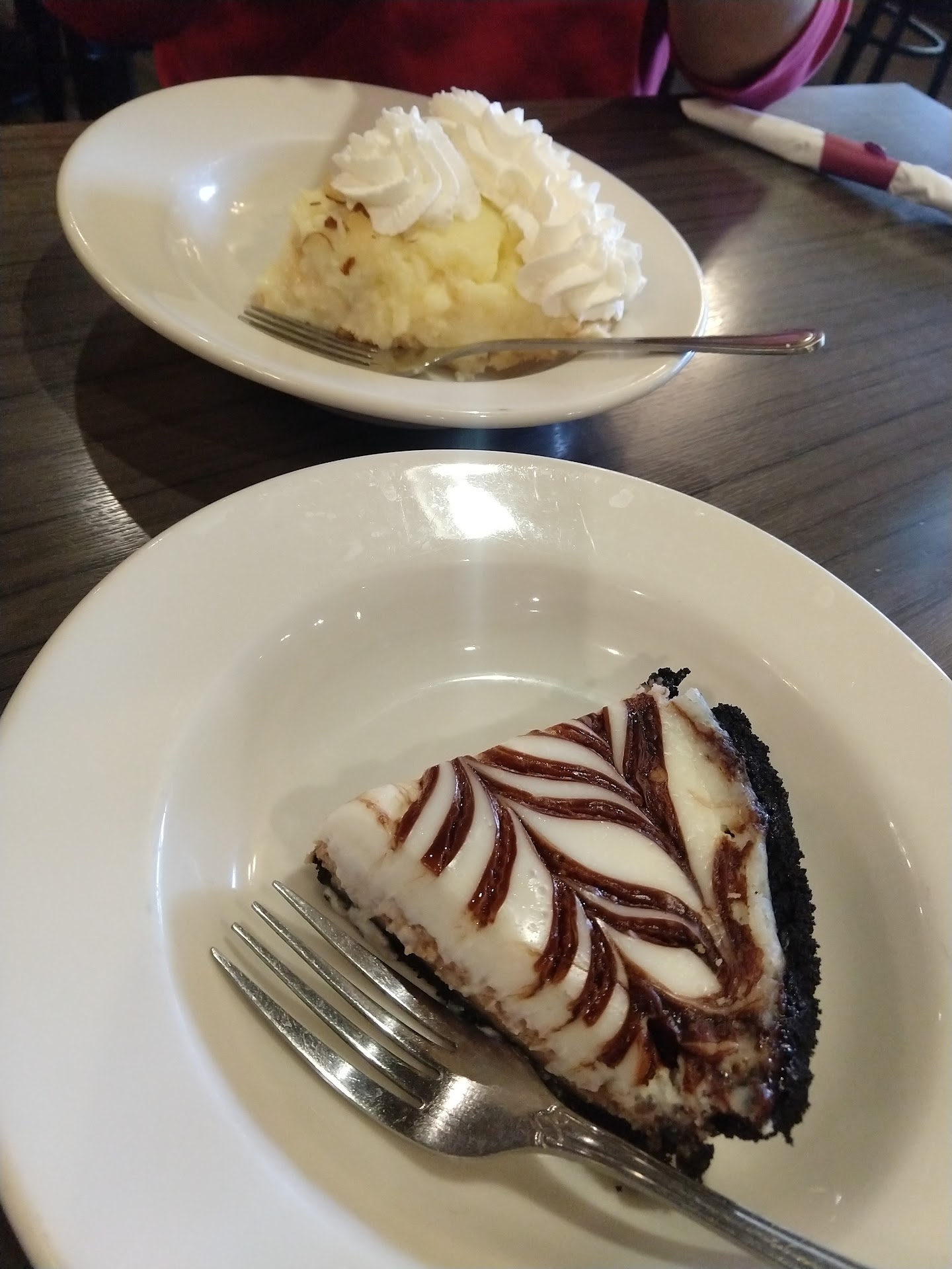 Read moreWhat horrible service here! I went to the restaurant Thursday July, 25th (mind you I have a disability) I bought a pie and then proceeded to wait for my ride and this older man (he has a limp) came from the back and asked if I was helped I told him yes and that I'm just waiting for my ride. He come up to me again after a few minutes to check on my ride status (like seriously what's it to you!) I am a paying customer, I don't have the right to sit in the seated area and wait for my ride??? Mind you the restaurant wasn't busy at 10am and I was no where near anyone else. The irony of it is I could have asked for a table and sat there and ate that whole pie if I wanted to. The last time he came up to me I said "would you rather I just wait outside" and he looked at me without even answering that question so I said to him "I am a paying customer" and he turned and walked off so I took that as a yes to go wait outside because that was very uncomfortable. Mind you I wasn't there for hours, not even 1hr. I bought the pie at 10 my ride came for me at 10:20. I was sitting there disrupting who? No one. I was literally just waiting on my ride and got indirectly put out after feeling uncomfortable. After all that got the pie to it's destination and it was burned! 😫 The picture isn't even showing just how burned. What a missed opportunity to be kind Marie Callender's what a sad...