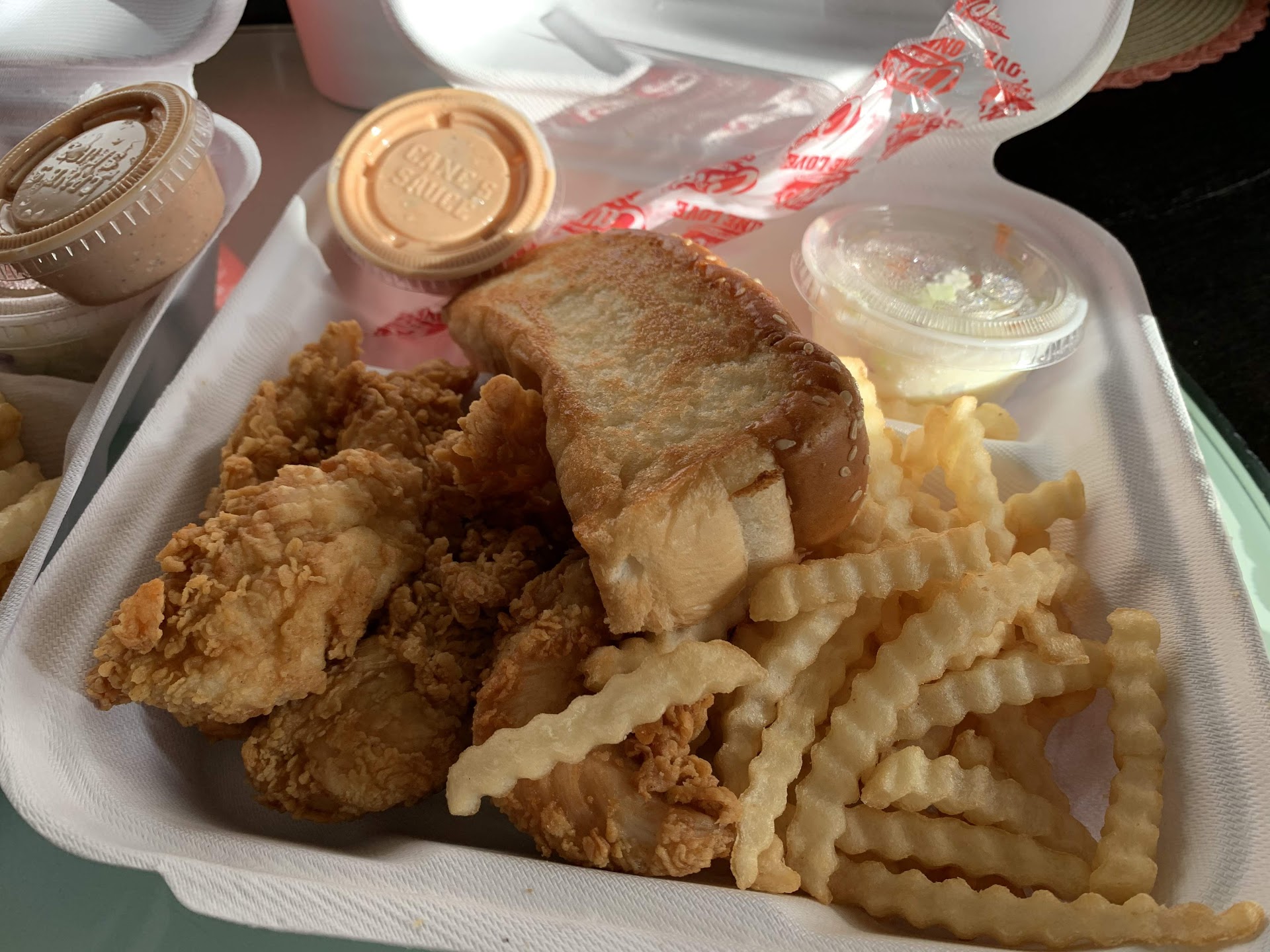 I had been wanting to try this place for years. My first visit was worth the wait. Juicy and tender chicken inside a uniquely crispy batter unlike any other that I have ever had. Delicate and light, I can only compare it to the crunch of a ruffles potato chip. Also, the lightly seasoned batter allows the Cane's sauce to shine... like the face of Moses after he came down the mountain where he met with God.