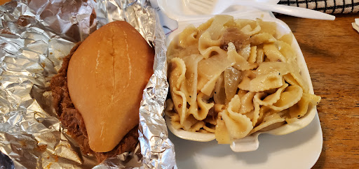 Read moreFat Mike's will never get accolades for being a culinary destination to go. It is a very simple eatery. The menu on the wall is simple; dogs, dogs, burgers and pulled pork. Bottled water be cams of soda. The 'dining' area consists of a mix of old (really old) tables and chairs, along with some other stuff akin to a storage unit.