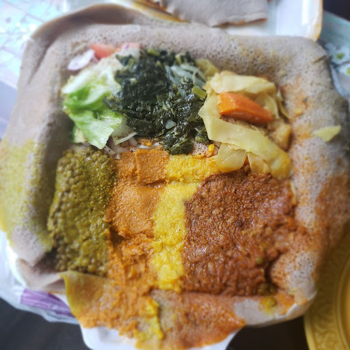 Absolutely delicious! I ordered their veggie combo from UberEats, which includes cabbage shiro, lentil kik alicha (stewed yellow lentils), spicy red lentils, green lentils, collard greens, and a salad. All of these dishes were served on a bed of injera, and the order came with another piece of injera folded up and left on top. Everything was incredibly tasty and, even after traveling about 30 minutes across Virginia, was still the perfect temperature. Ethiopian food definitely holds up well in take-out containers (even though it loses some of the aesthetic). I personally would've preferred that the spicy lentils be slightly spicier, but they were still incredibly flavorful and had a very slight kick. The salad seemed to just be lettuce, tomato, red onion, and slices of jalapeno with what tasted like a standard Italian dressing. I wasn't a huge fan of the large slices of jalapeno, but the salad was still nice and refreshing, and it helped to counterbalance how heavy the rest of the meal felt. The dressing does soak through the injera really quickly, though. The shiro certainly lived up to all the hype, and everything was all-around solid and really tasty. There's also an incredible amount of food for the price -- the combo costs $16 off of UberEats and it can absolutely feed 2-3 people. I also ordered a scrambled egg to eat the next morning; it's a simple dish with a delicious egg scrambled with tomato, red onion, and jalapeno. It has a slight kick and is a phenomenal way to start the morning. You can either get it with bread or injera; I originally ordered injera, but it seems like they made an accident and gave me bread instead. Either way, I'm glad that I ended up getting to try out their bread; it had a super soft center with a slightly crunchy exterior, and it was absolutely delicious when warmed up. I definitely plan to become a regular here, and I can't wait to visit in person...