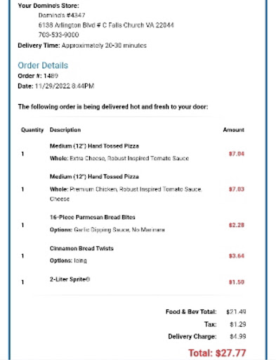 Read moreEDIT, June 30 2021: AVOID THIS LOCATION. My rating in August 2020 was five stars. I had to change it to one star because the way I was treated was appalling. My pizza was without sauce (did not request no sauce) When I called the store to let them know, the pizza maker Ahmed was very confrontational, insisting that no sauce was on the order. He said he will make another one for us to pickup tomorrow. I am disabled as is my aunt. We do not drive. I told him we are unable to get to the store. He kept on saying that we need to pick up the pizza. I kept insisting on speaking to the person in charge. Another man came on the phone. I asked if he is the shift supervisor. He said yes. I asked for his name. He said Deese. When he offered his last name I said I’d like to have that and he said Nuts, then hung up. Absolutely disgusting behavior, I was aghast and angry. There is nothing that would make me order from this location ever again, let alone Domino’s. We will go back to ordering from local pizza shops. Once again, AVOID THIS LOCATION.