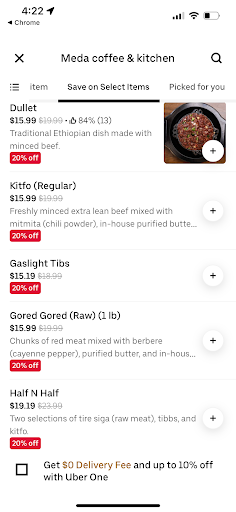 Starting with the positive aspects, Meda Coffee & Kitchen presented a unique and intriguing culinary experience, showcasing the rich and diverse flavors of Ethiopian cuisine. The menu featured a variety of traditional dishes, each with its own distinct blend of spices and aromas. The authenticity of the culinary offerings was evident, providing patrons with an opportunity to explore the distinctive tastes of Ethiopia.