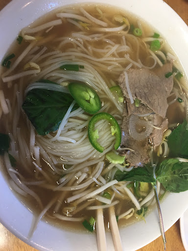 The service, however, was easily the second worst I have ever experienced. We arrived outside of the lunch time rush hour. Expectation is that you seat yourself despite no sign indicating as such. We were not the only group confusedly waiting. It was unclear if tables had been clean or not in this pandemic environment, although that was only a small concern to us. We had to request menus as the waiter forgot to bring some out. It was 10 minutes after that point before anyone took our drink/food order. It was another 10 minutes before drinks arrived with the waiter forgetting to bring a straw. Our food arrived 8 minutes later, but we had to chase down utensils. In all we spent just over 30 minutes to receive a pho order in a restaurant at 50% capacity. Lastly, there was general disregard for covid restrictions. An older couple managed to bully their way into a "social distance" table. In short, food is great, service sucks, you will probably wait longer than most pho restaurants, but not because...