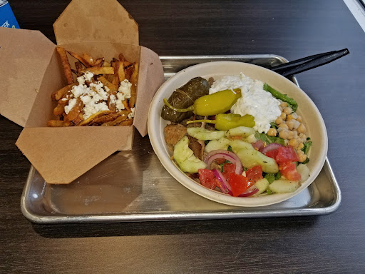 Read moreVery tasty and fresh! I had a bowl w lentils, traditional gyro meat, salad, feta and dolmades, plus olives, tzatziki and spicy hummus. I may go half rice, half lentils next time, but it was simple and delicious. $12 w dolmades and no drink. Not bad on price. Well worth returning. Went back and had half rice, half lentils w/traditional meat this time. Double shot of Tzatziki, no spicy hummus this time. Ordered the feta fries as well. The fries are only ok, and I really missed the spicy hummus. But again, a really good meal though at $16 with the dolmades and fries, it is getting a bit pricey for everyday lunch. The dolmades are worth it, the fries not so much. Still 4 stars for a good, moderately...