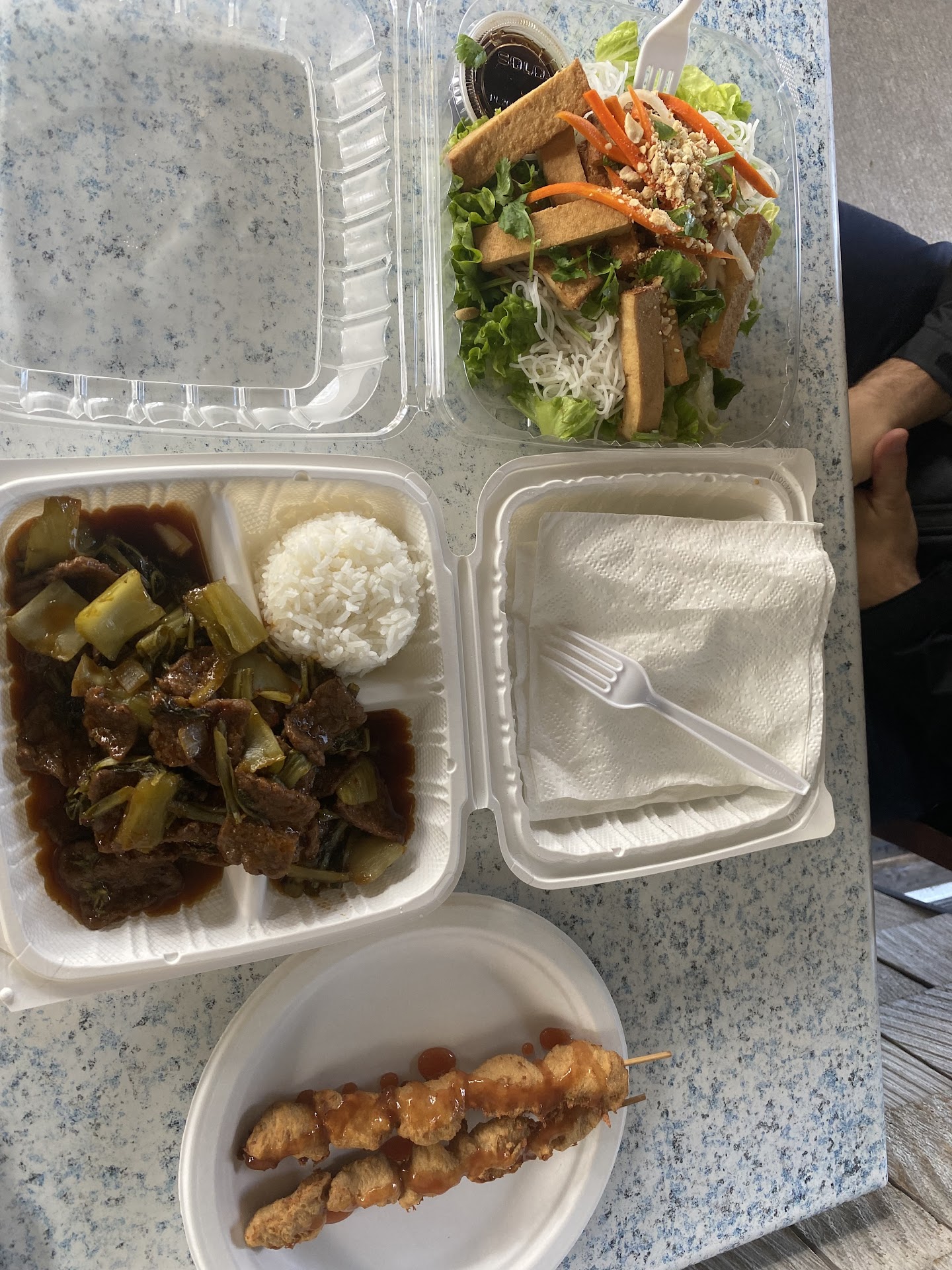 We got the #5 chicken kabob (texture and taste were right on, could be confused with real chicken), #16 tofu noddle, and #35 beef pickled veggie and rice (rice dishes usually served with brown rice but I asked for white rice instead since I like my white jasmine rice). They happily switched out for me. We overheard some guests asking are you sure itâs vegan? The cook keeps having to response âno meat! No egg! No milk!â. It was quite funny people were confused how realistically close the...