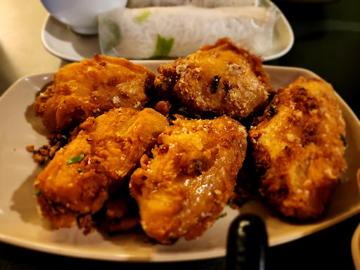 We ordered their fried tofu (best I've had in a long time!! Super "meaty" firm tofu), garlic butter wings (yooooo!!! Them wings were meaty with the perfectly crispy outside and super juicy inside. The added garlic/green onion crispys....I could buy a jar of it!!), spring rolls (the sauce was the perfect cherry on top!), beef pho (perfect for this chilly rainy day!), and of course...2 orders of Coung's mom's curry soup with chicken and a side of brown rice.
