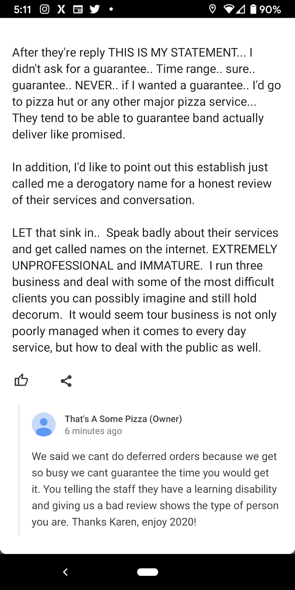 Read moreI was visiting from California with my wife and stopped to get lunch before we were supposed to be at the ferry (we thought we had plenty of time). We ordered our pizza no problem but after waiting 50 minutes we never received it. We saw the owner or manage come in with his daughter and they grabbed a pizza that look very similar to ours and left. When I went to check on why our pizza was taking so long I heard the employees say "he took the pizza so we will have to remake it". Apparently the owner/manager thought our pizza looked so good that he would just take it home leaving his customers to wait even longer then it was supposed to. When I checked on why things were taking so long they were just starting to remake it. We had to get to our ferry so we couldn't really wait any longer. I asked for a refund as well as asked for a couple slices of pizza so we could at least eat something before we left since we hadn't eaten all day. They gave us the refund and and a couple of slices for free. The waitress who took our order was understanding and very nice, but for an owner or manager to walk off with a customers pizza is absurd and a terrible way to run a business. Though the employees were very nice I was baffled how someone in charge could run a business so selfishly like this. How in the world did the owner/manager just decide "oh this pizza looks good, I'll just take it and make a customer wait longer". This blows my mind! Never going back and I would suggest no one going to Bainbridge island try this place. So incredibly baffled by the lack of understanding for...