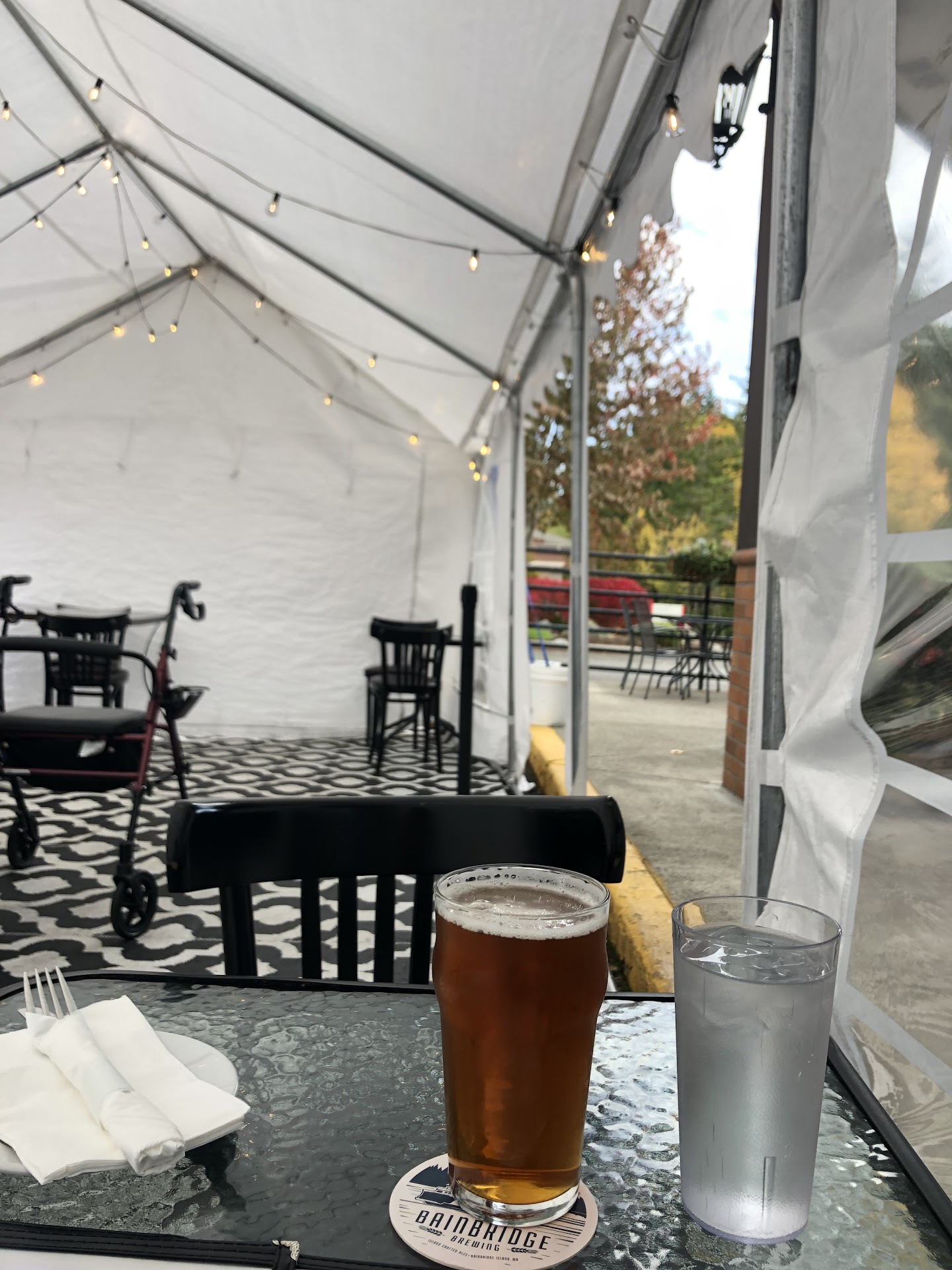 I am a fan of pub food and good beer, and was excited to try a new place close to home. I liked the layout with a sports bar off to one side, and family friendly tables arranged to take advantage of this locations natural light. Our server was prompt and friendly, which I always appreciate. We ordered the meat loaf with "pub fries" and steak and ale "pie" The restaurant was not busy and our food arrived quickly. Meatloaf itself was good, but came with a thick layer of luke warm barbecue sauce on top, which was off putting. The steamed carrots and brussel sprouts served with the meatloaf were well prepared. The "pub" was missing from the standard fare fries. My companion described them as "western family freezer fries" they were hot but not exceptional. The steak and ale pie was quite disappointing. A small cast iron bowl of stew with VERY tough beef, some mushrooms, and tiny chopped carrots. It was no variant of a pie at all. Atop my stew was a puffed square of pastry. It was not part of the dish and was too large and puffed to eat with the stew. The overall effect was artistic, but not good. Our meal came to 40 dollars with no alcohol, appetizers or dessert. While this is certainly not expensive by Bainbridge standards, it felt like a poor value for what we received. If you want good Irish style pub food, I suggest you take the ferry to Seattle and visit the Owl and Thistle for both Guinness stew...